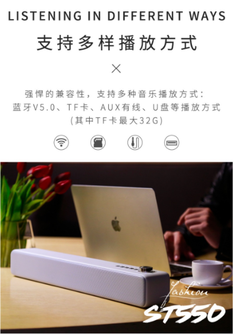 WK声霸ST550 Desktop Bluetooth Speaker - Multi-functional Mini Wireless Bluetooth Audio with Card-playing Function