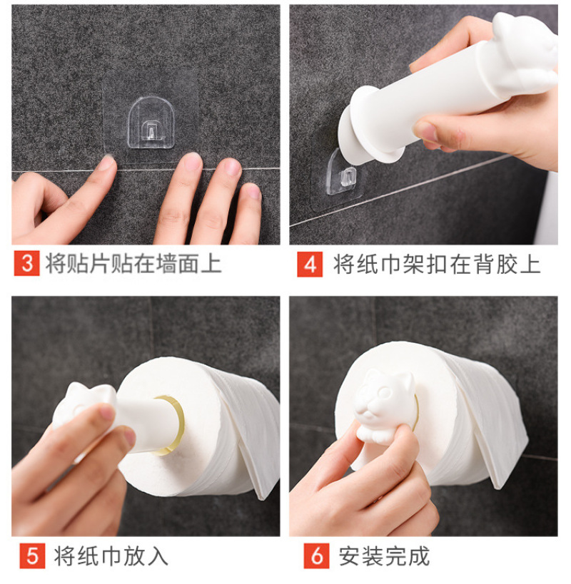 kitten retractable tissue holder, punch-free tissue storage rack