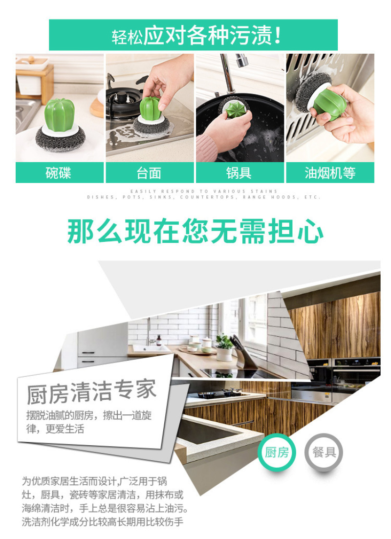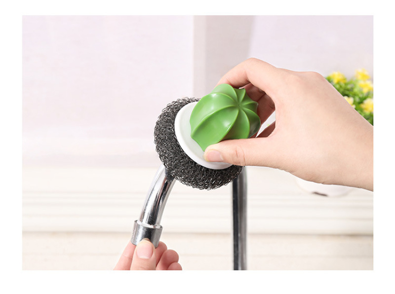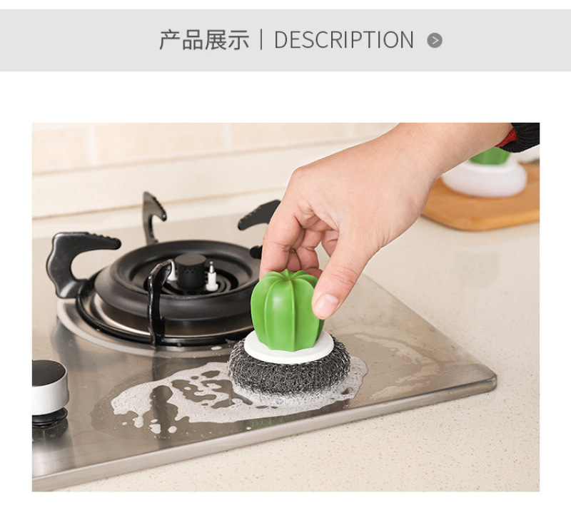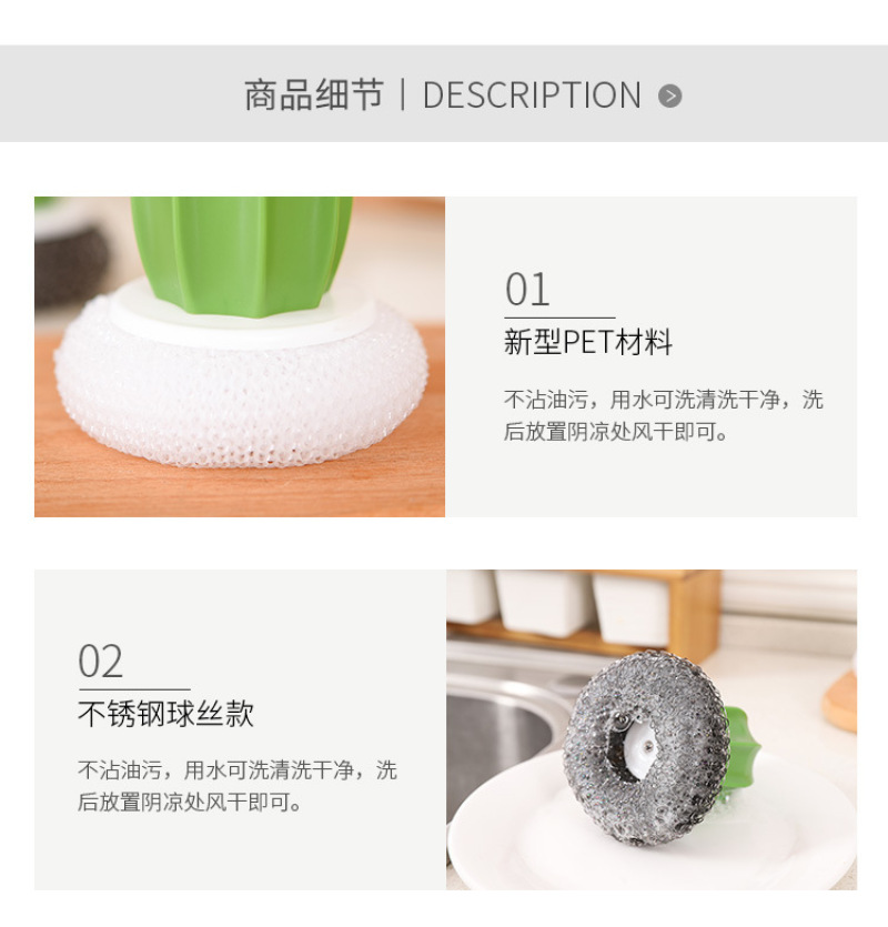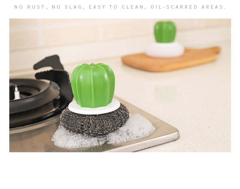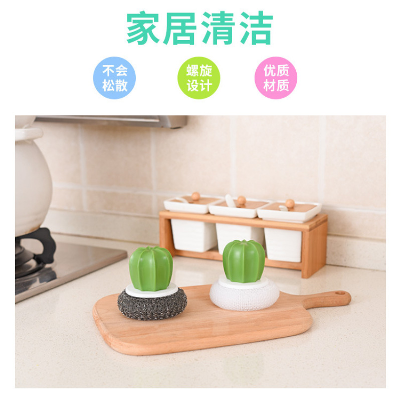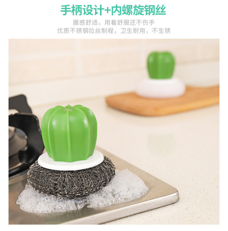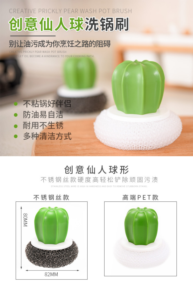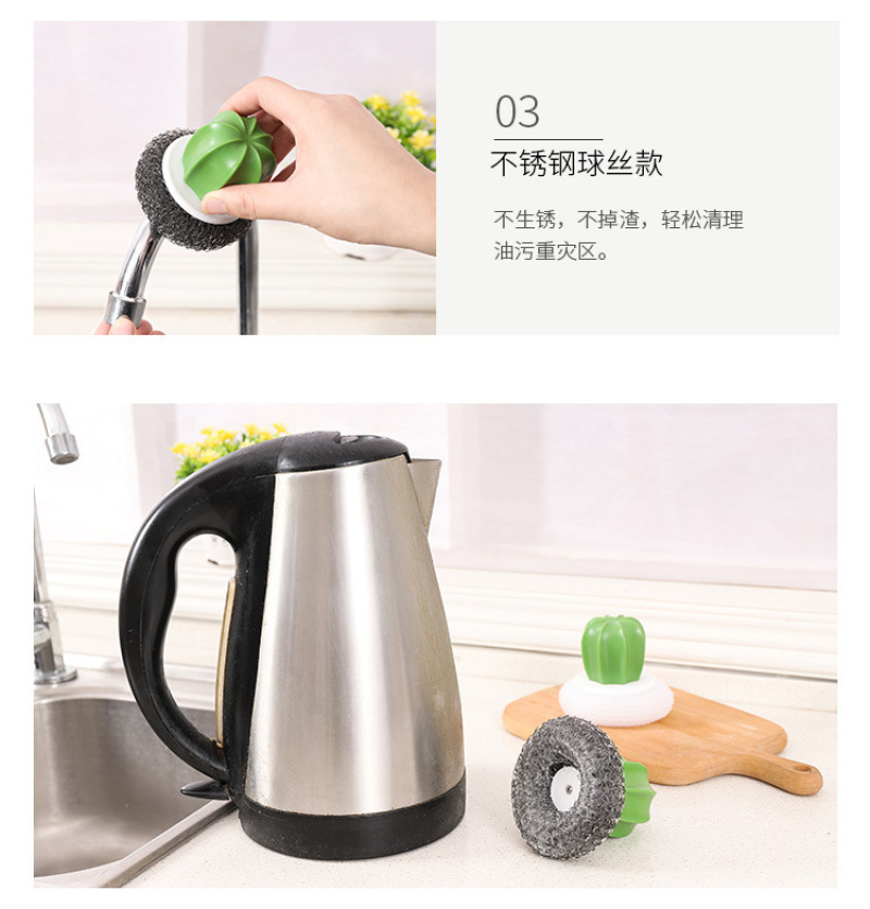 cactus cleaning brush, wire ball, plastic brush pot ball, cactus cleaning brush (2 pack)