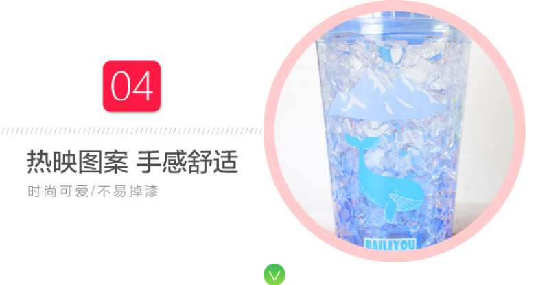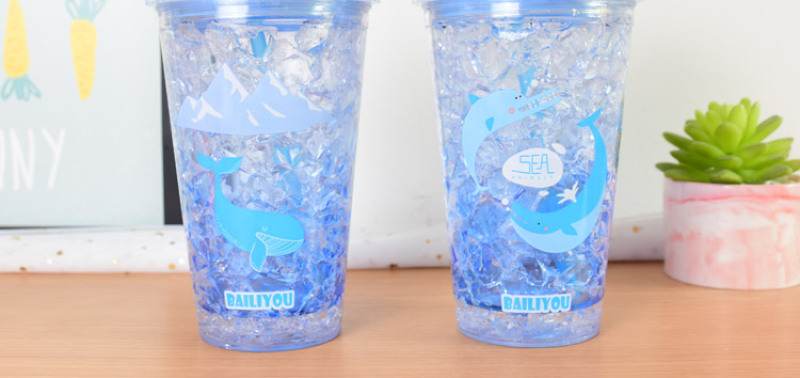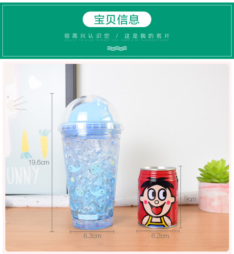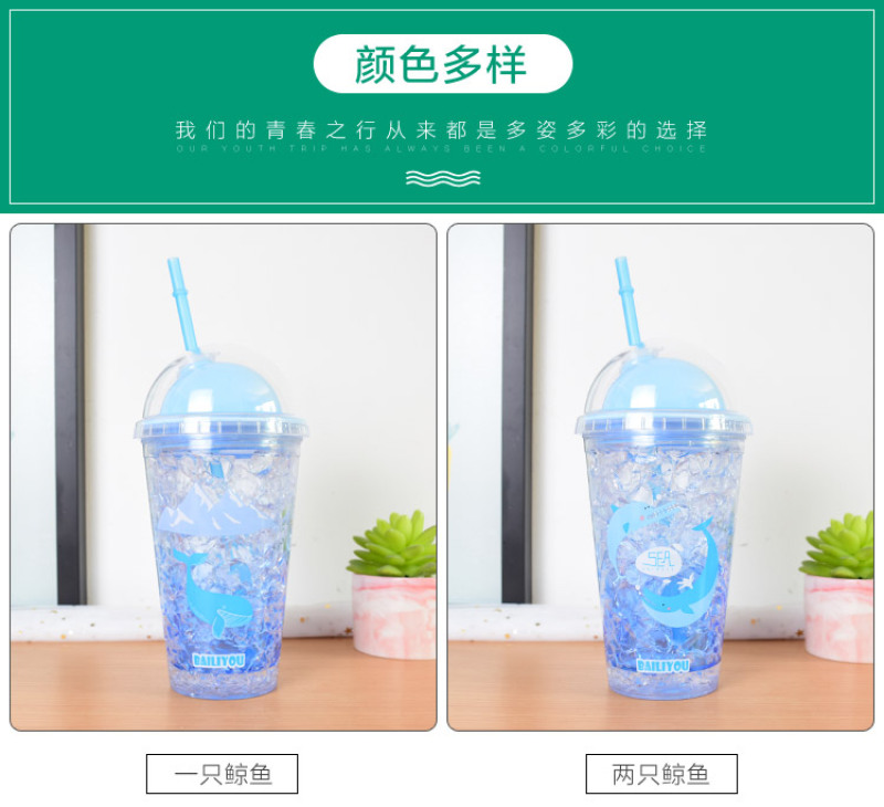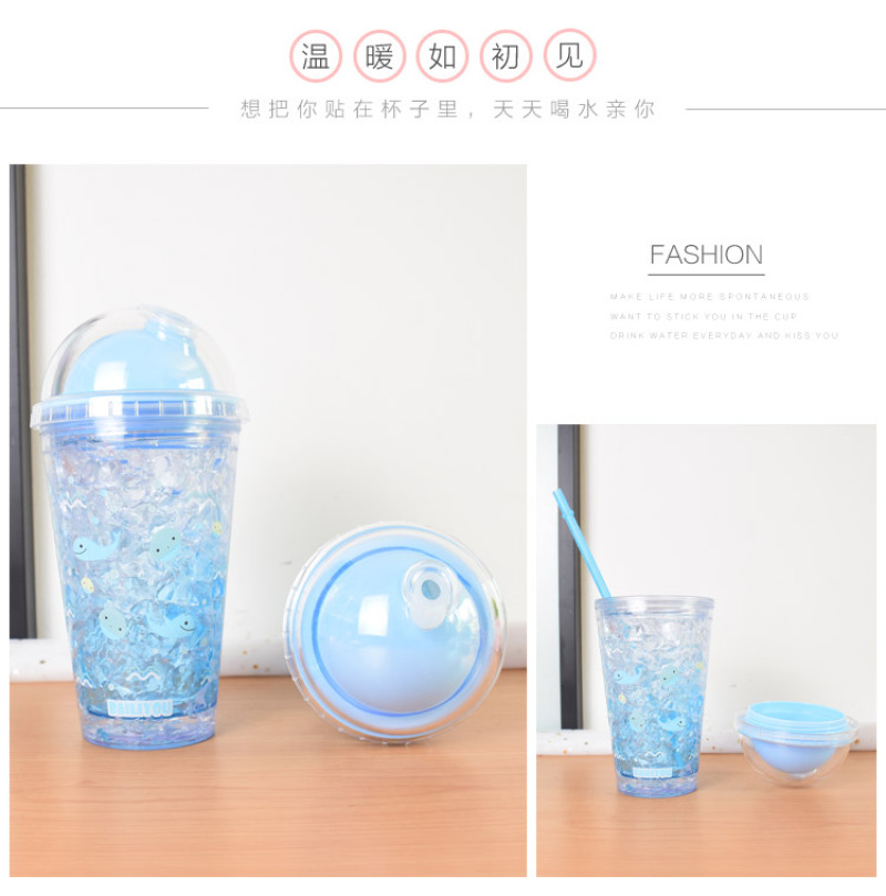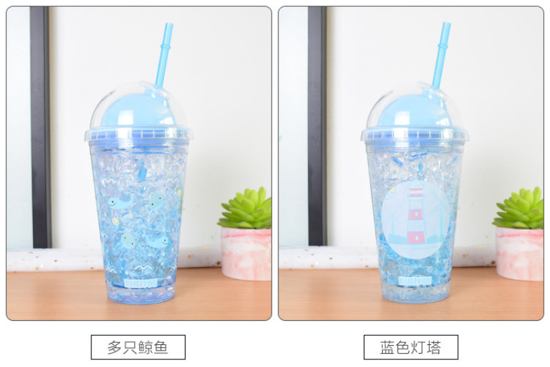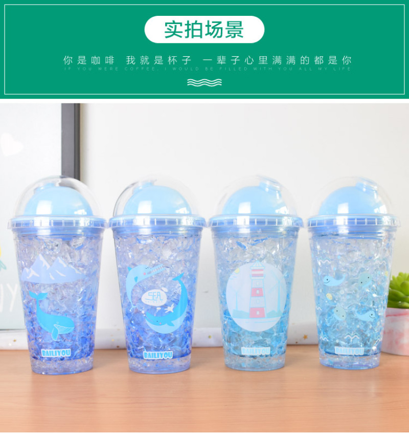 Summer ice cup AS double layer plastic broken ice cup straw gradient water cup rapid refrigeration sea ice cup