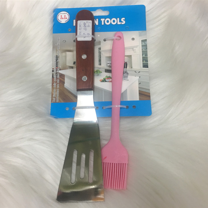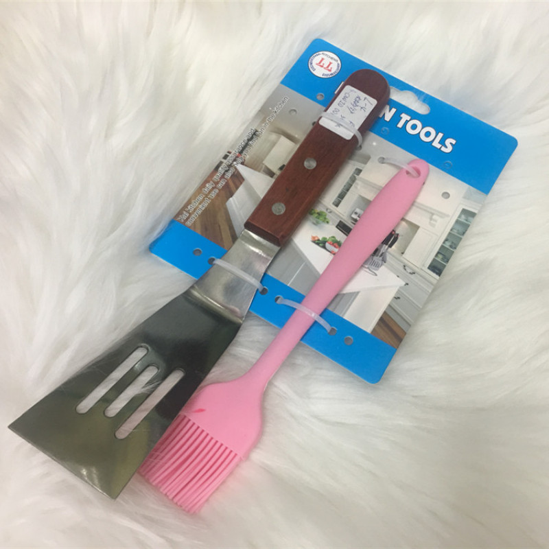 kitchen two-piece wooden handle pancake triangle spatula silicone integrated oil brush cream brush barbecue tool spicy oil brush