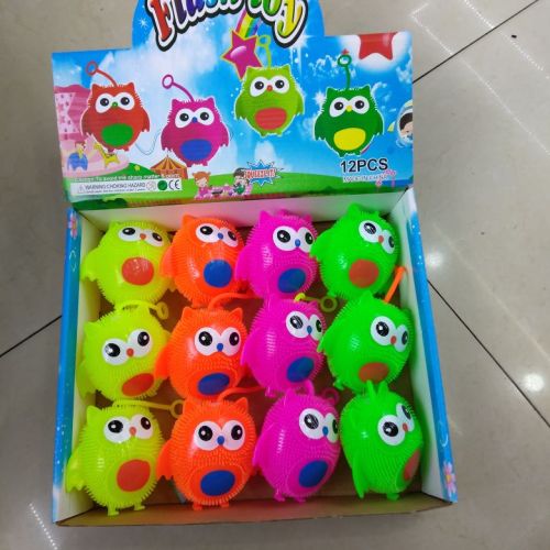 new stall hot sale pinch music toy flash luminous ball owl with light with whistle with rope