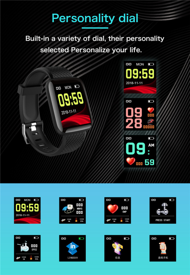 116plus smart bracelet ledong app sleep monitoring step counting blood pressure heart rate sports bracelet