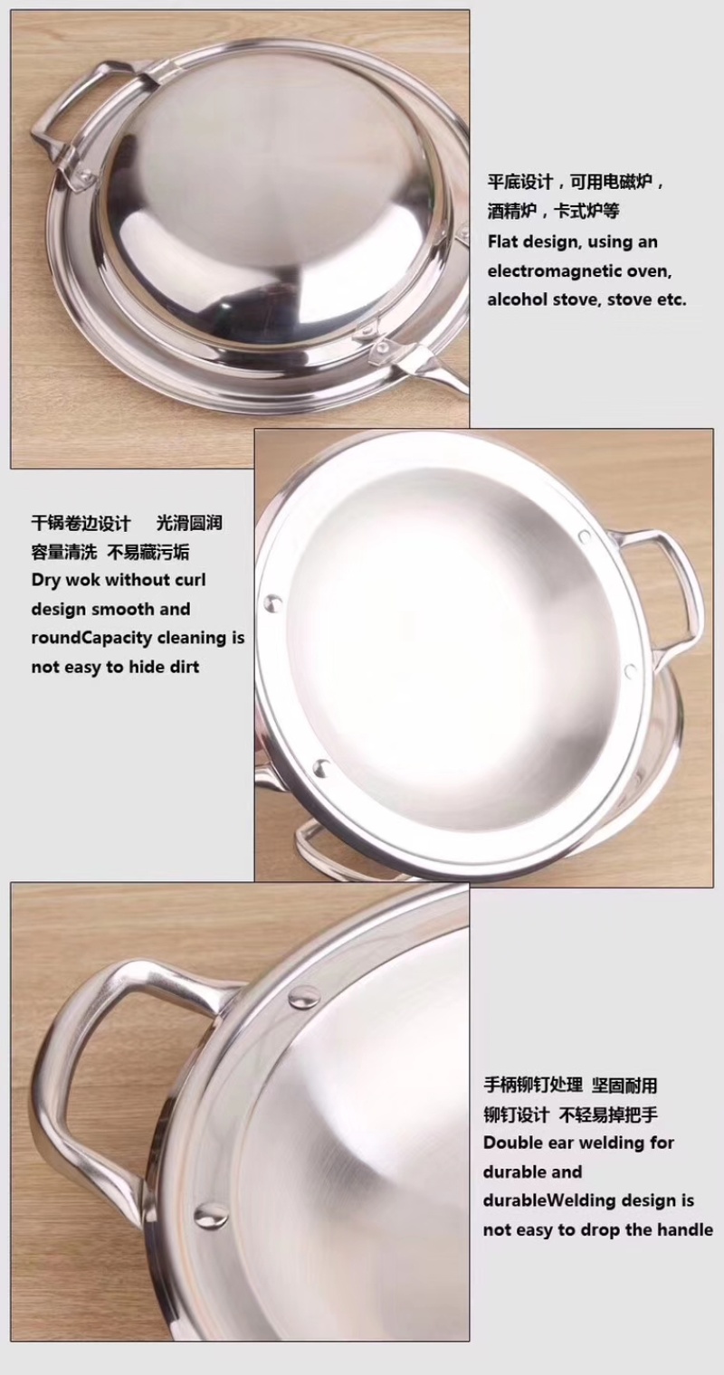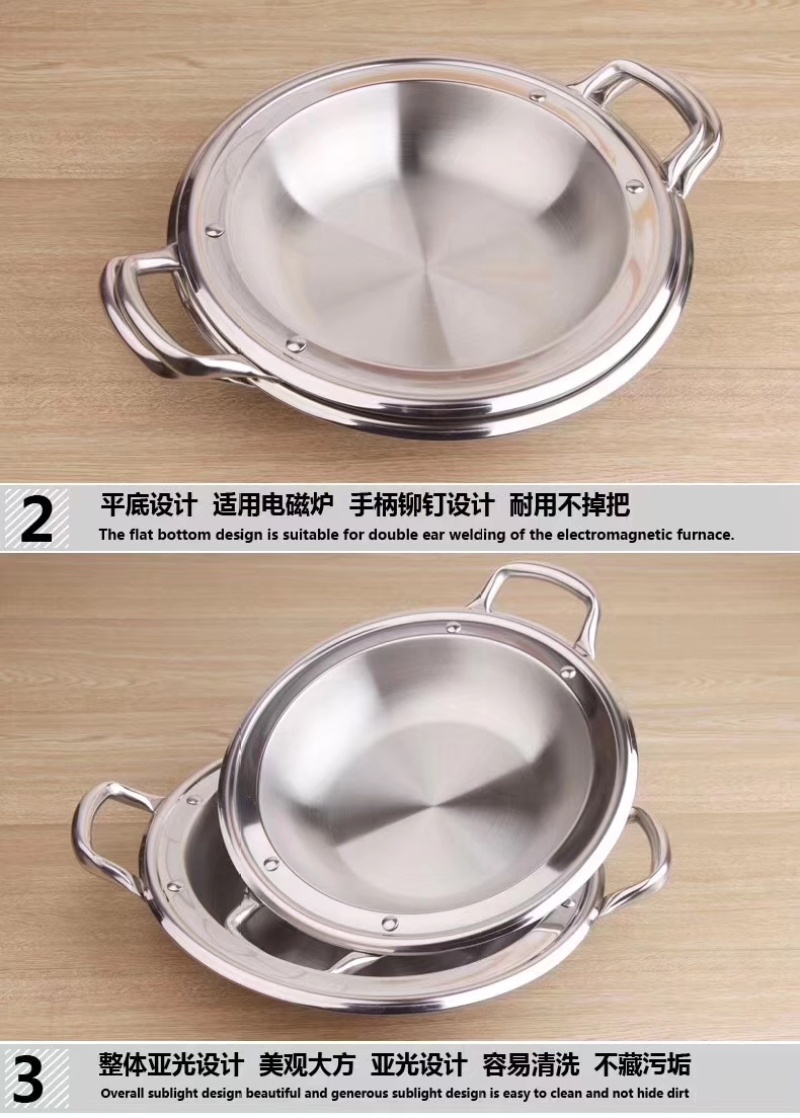 Stainless steel wide-edge pot, non-stick frying pan, stainless steel barbeque pot, shallow non-stick pan, stainless steel dry pot:
