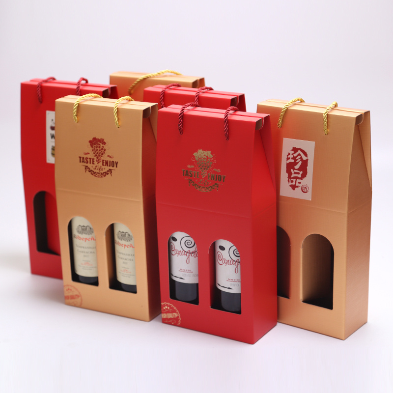 Top - grade corrugated wine bag - wine portable paper box with two red wine bags