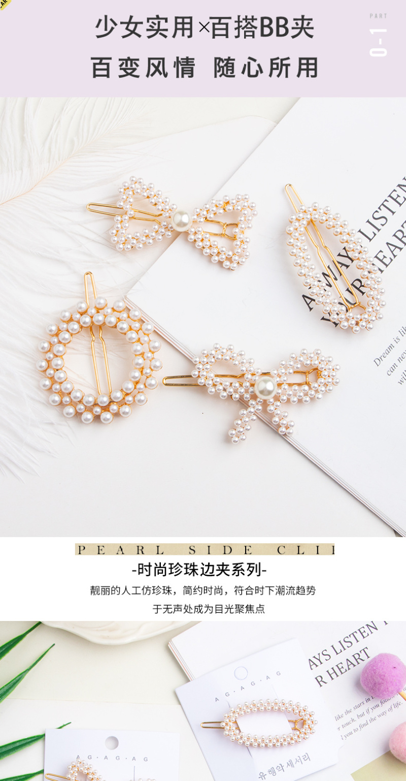Korean Hot Selling Pearl Hair Accessories Metal Pearl Hairpin Combination Set Simple Word Clip side Clip BB Clip Wholesale