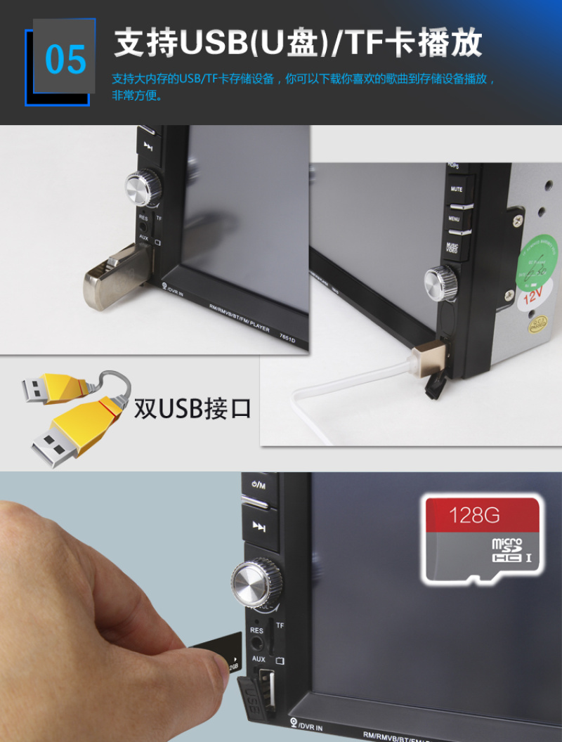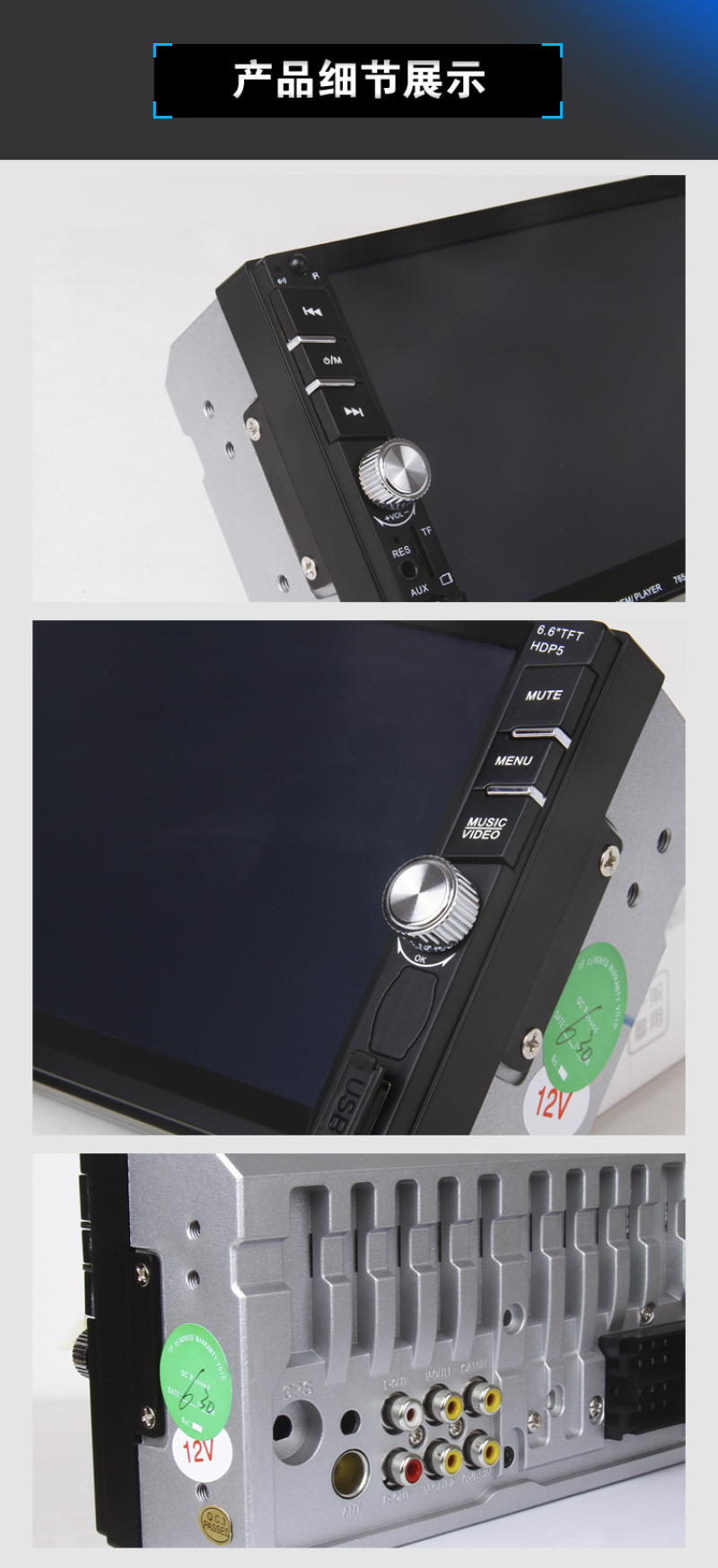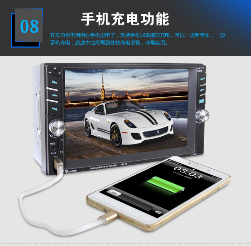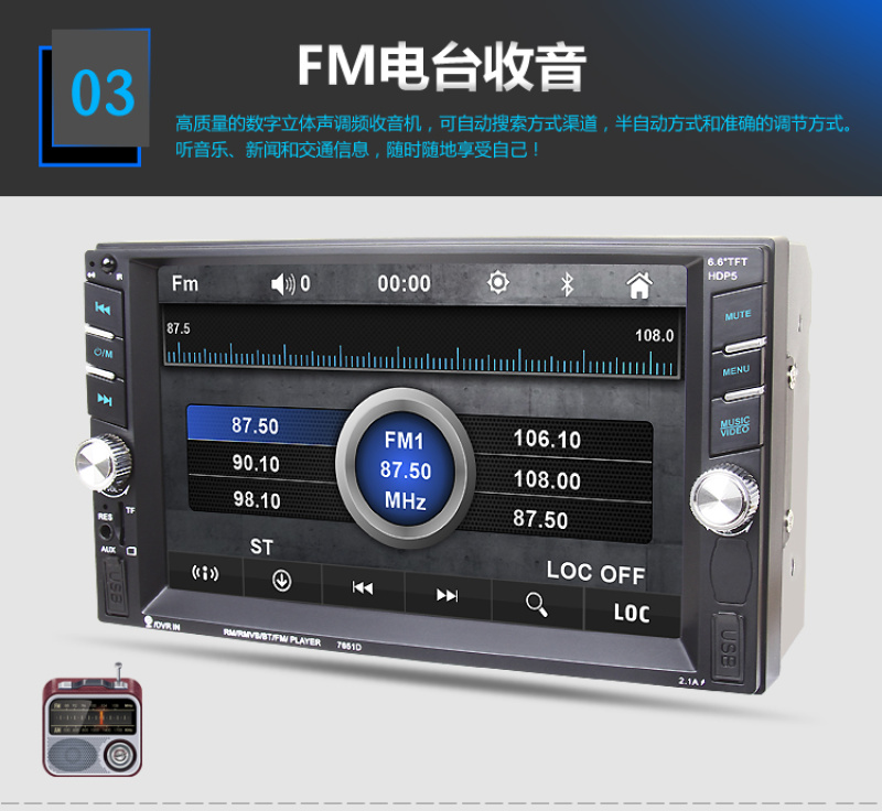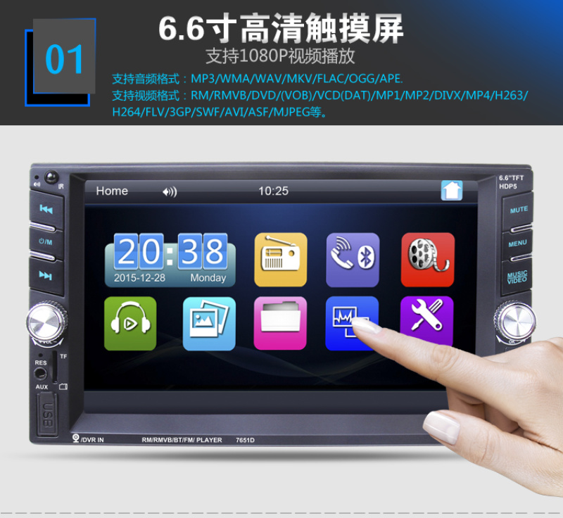 6.6-inch car mp5 player dual-spindle machine car mp4 universal machine 7010b bluetooth reversing priority