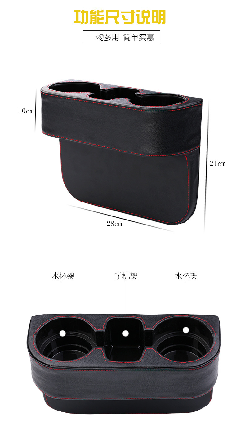 High-quality ultra-leather car storage beverage holder, which can effectively utilize the gap space on the side of the car seat to store various small items such as parking cards, mobile phones, data cables, CDs, keys, change coins, and receipts.