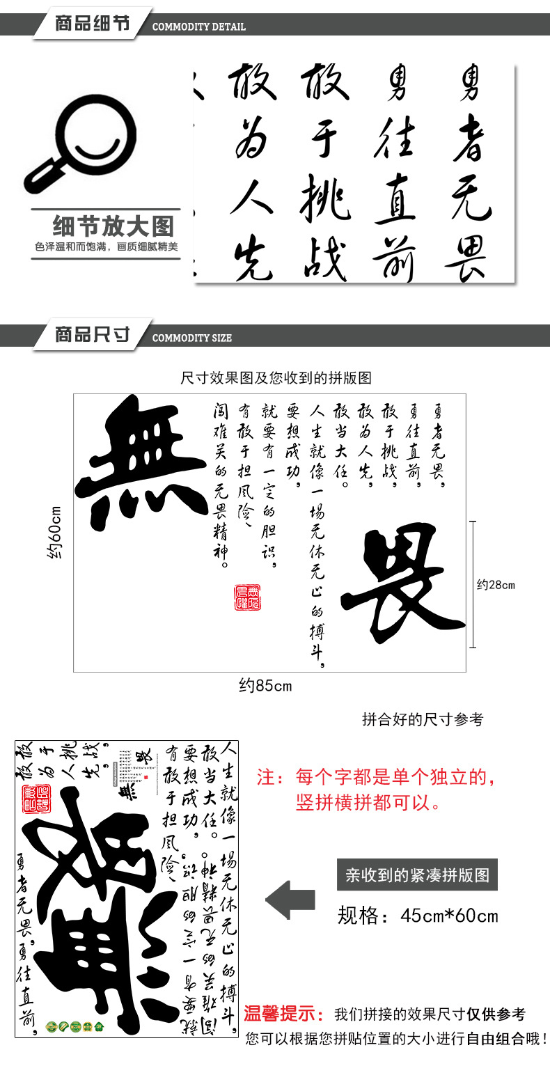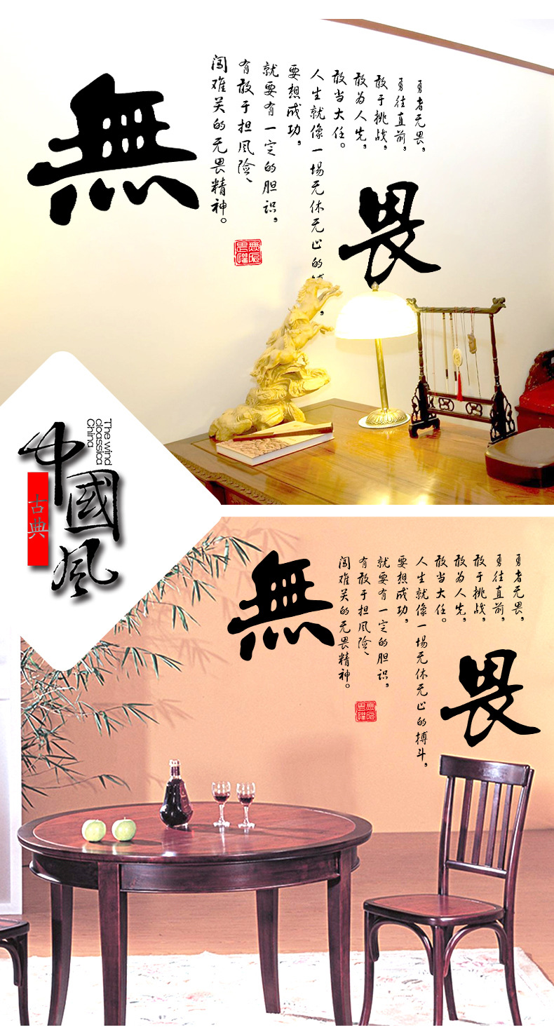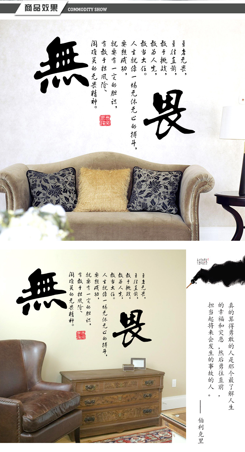 New there wall stickers fearless Chinese style calligraphy font stickers office dormitory stickers