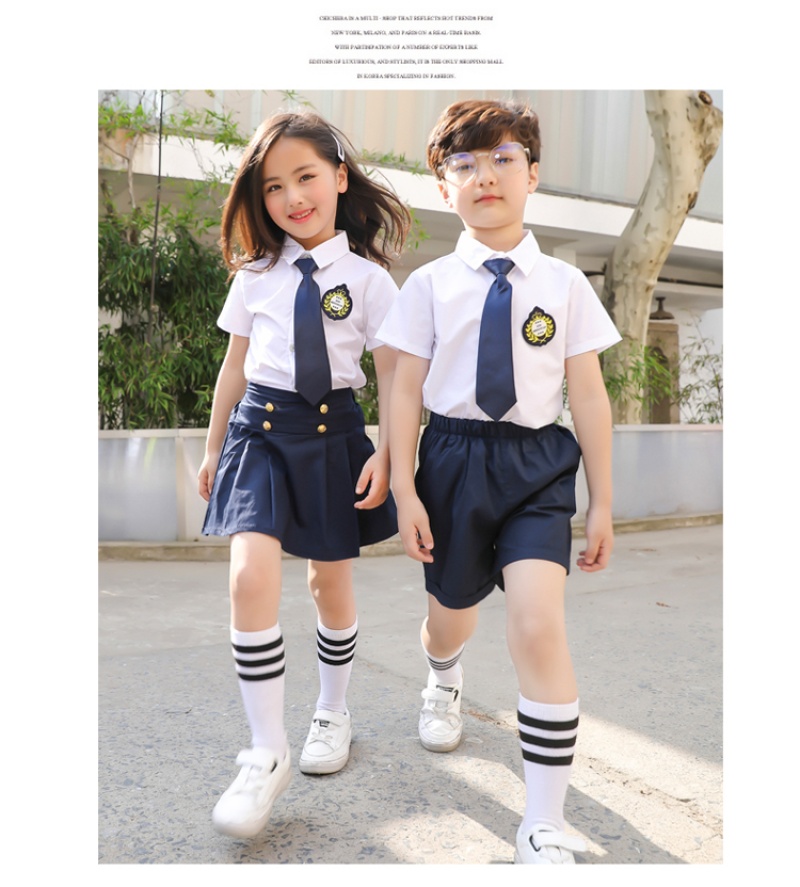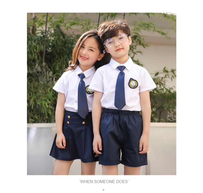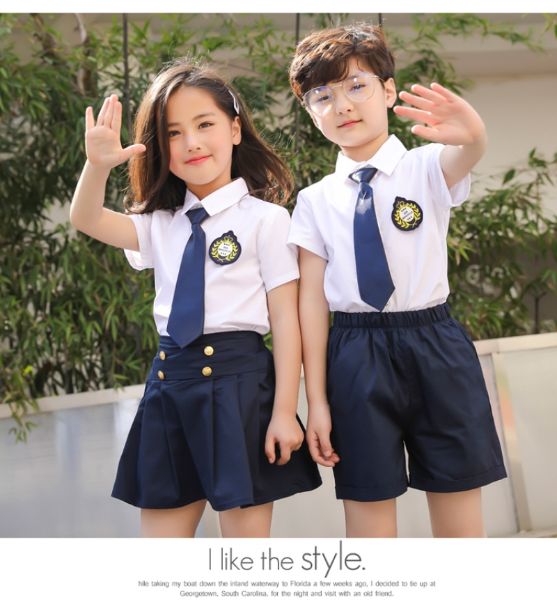 White shirt + blue skirt 100cm, 110cm, 120cm, 130cm, 140cm, 150cm, 160cm, 170cm, 180cm OPP bag packaging, quality is our motto, good quality at a reasonable price, low profit but high volume!