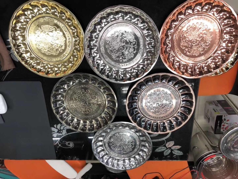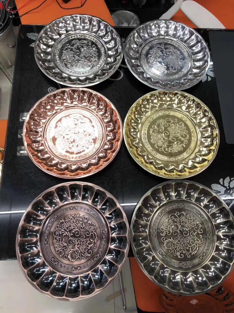 Stainless steel carved dinner plate, barbecue plate, dish plate, noodles plate