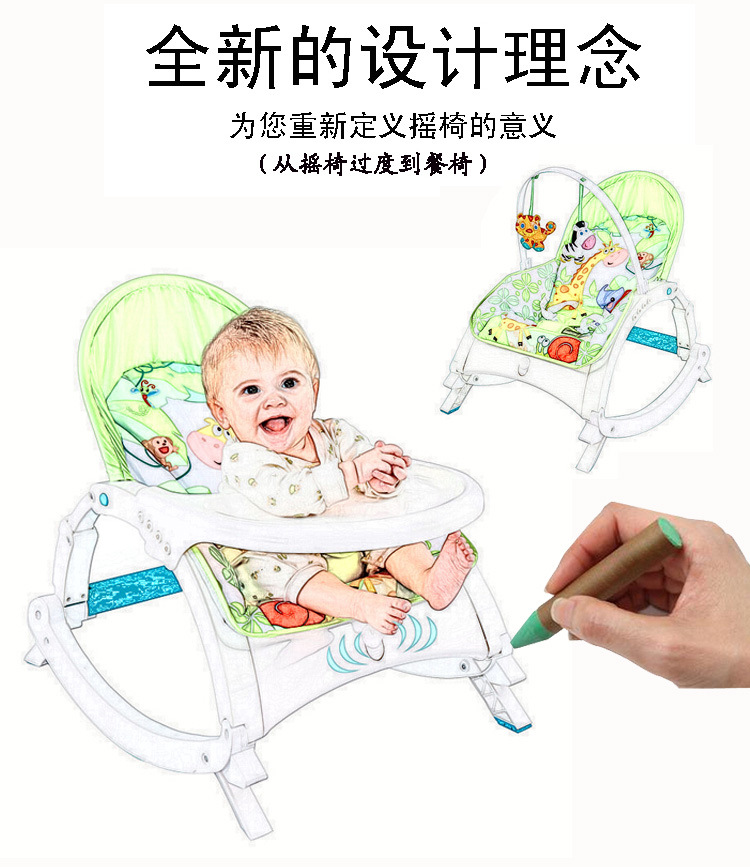 New baby 3 in 1 dining chair music rocking chair baby vibration pacifier recliner plate rocking chair