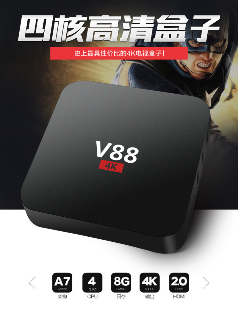 v88 tv box android smart tv box quad-core rk3229 1g/8g .2.4g wifi