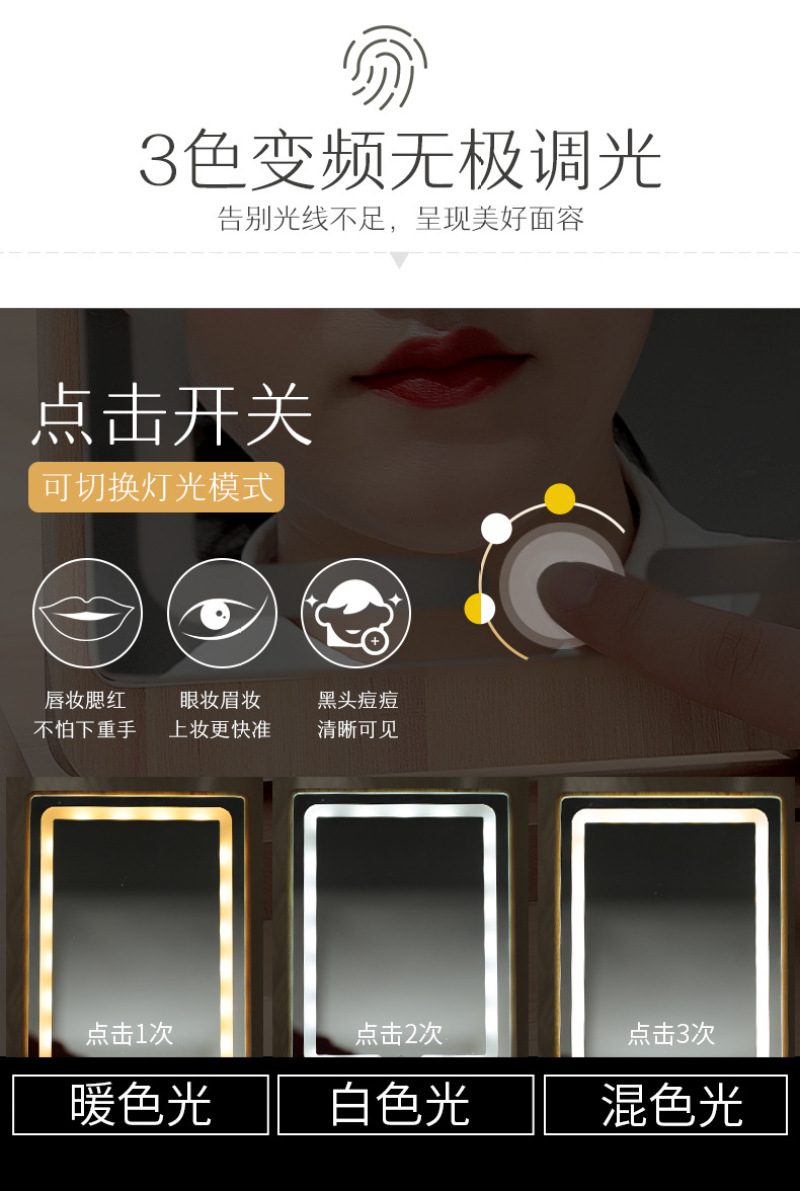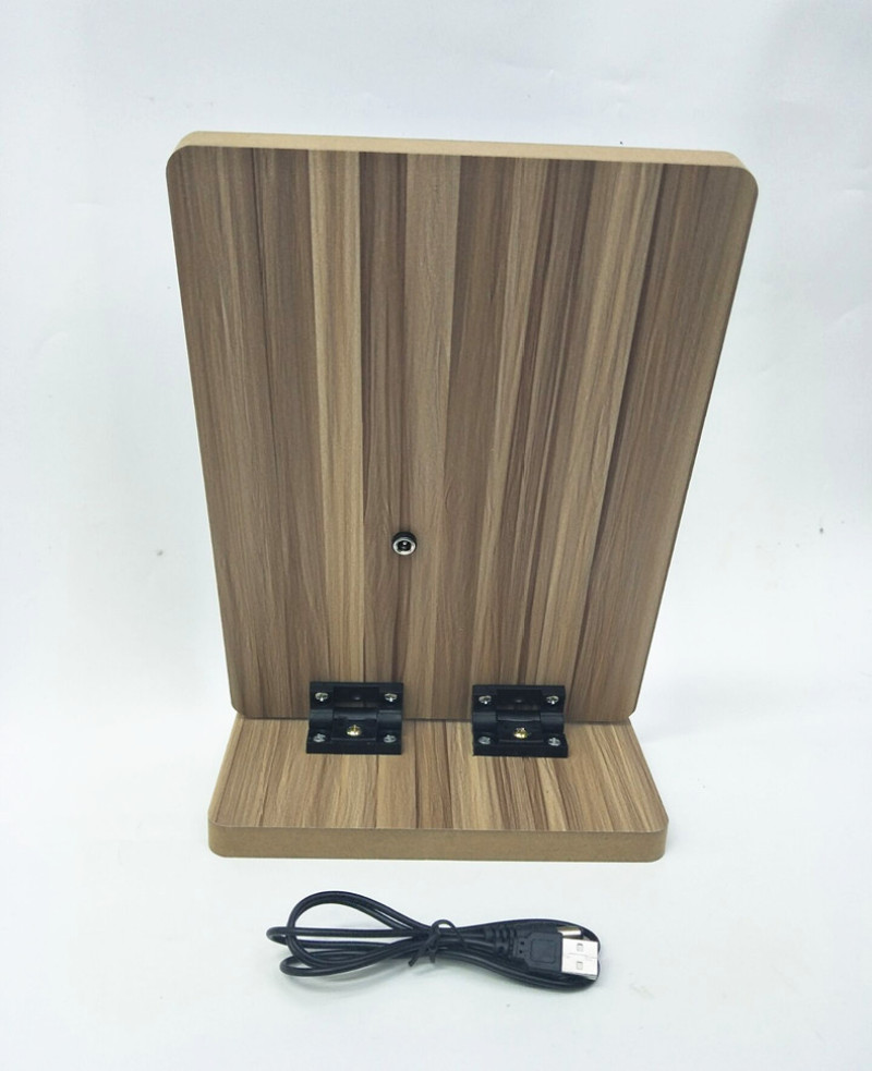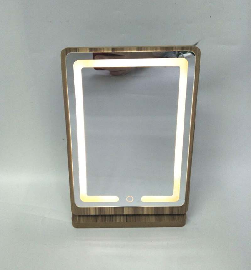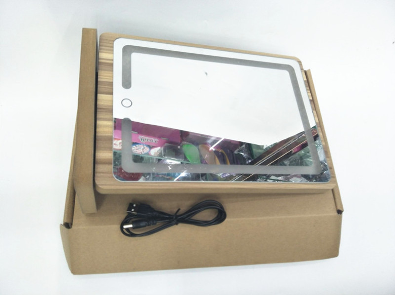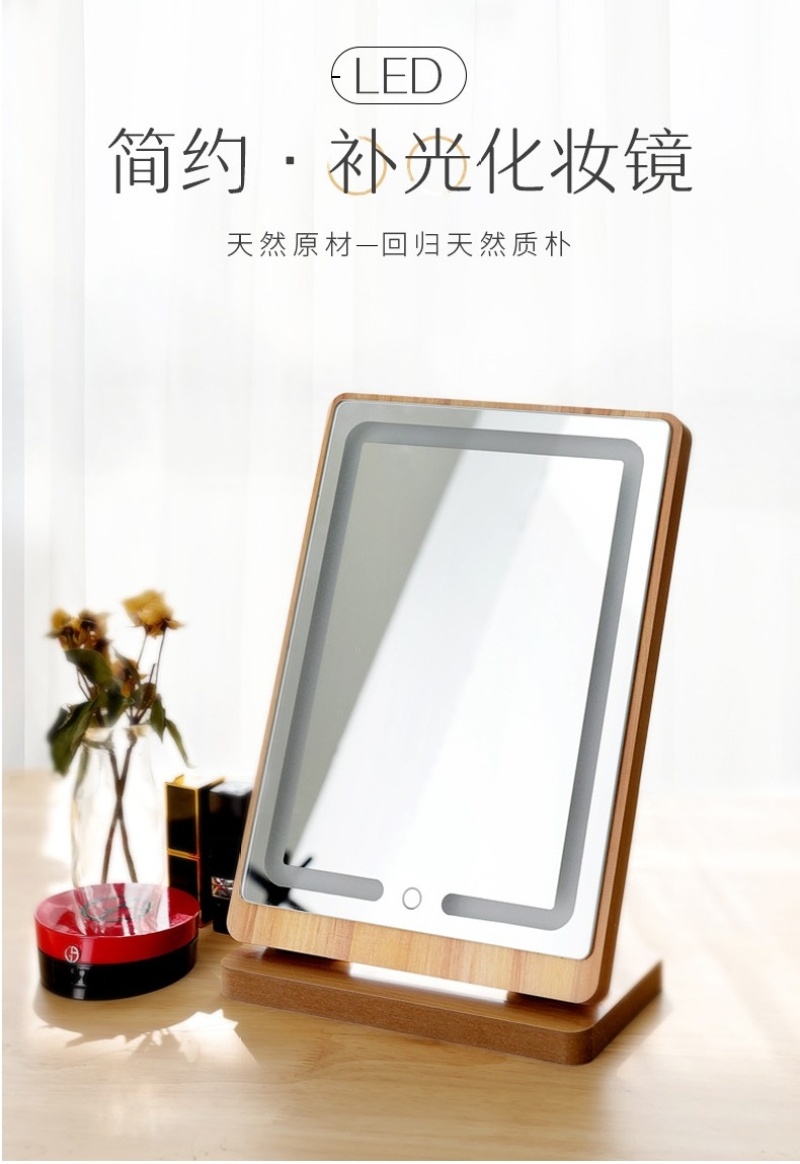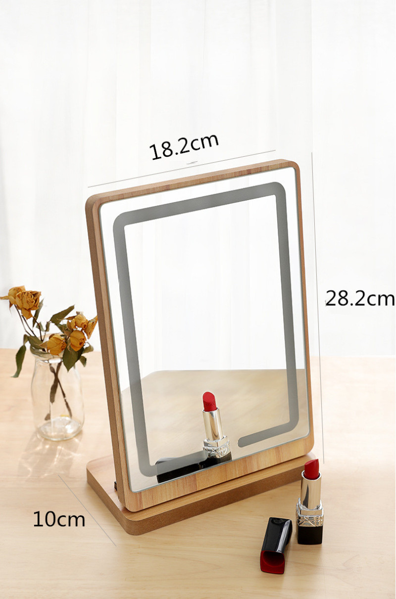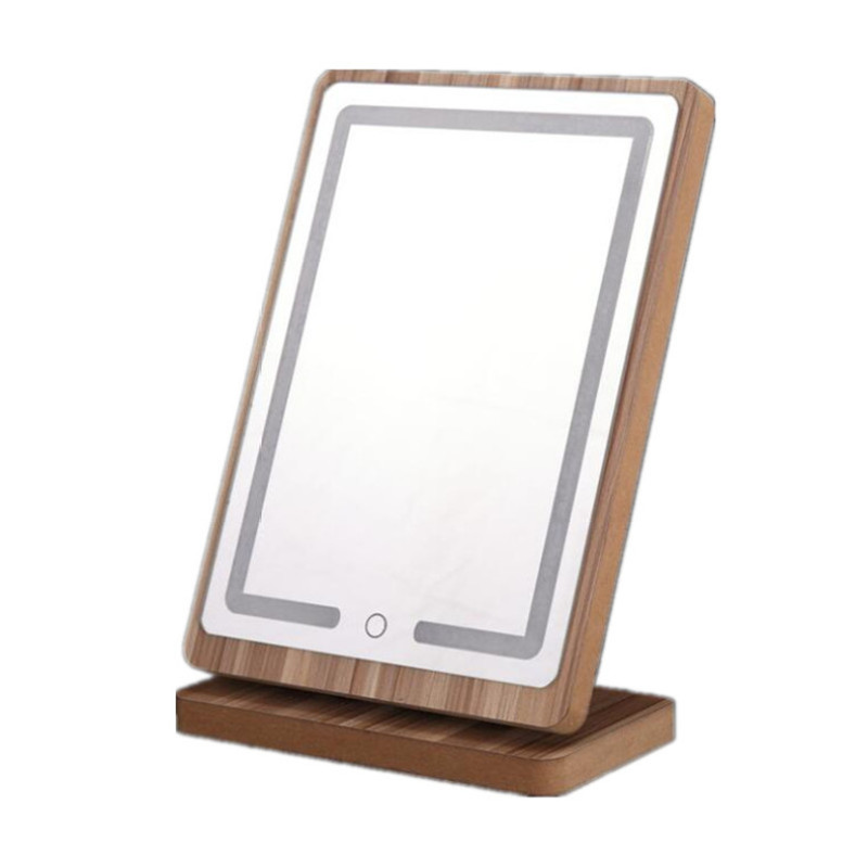 [product name] : wooden LED rechargeable table mirror