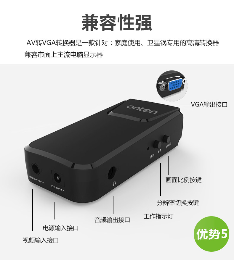 AV to VGA converter video TV to computer monitor TV converter box