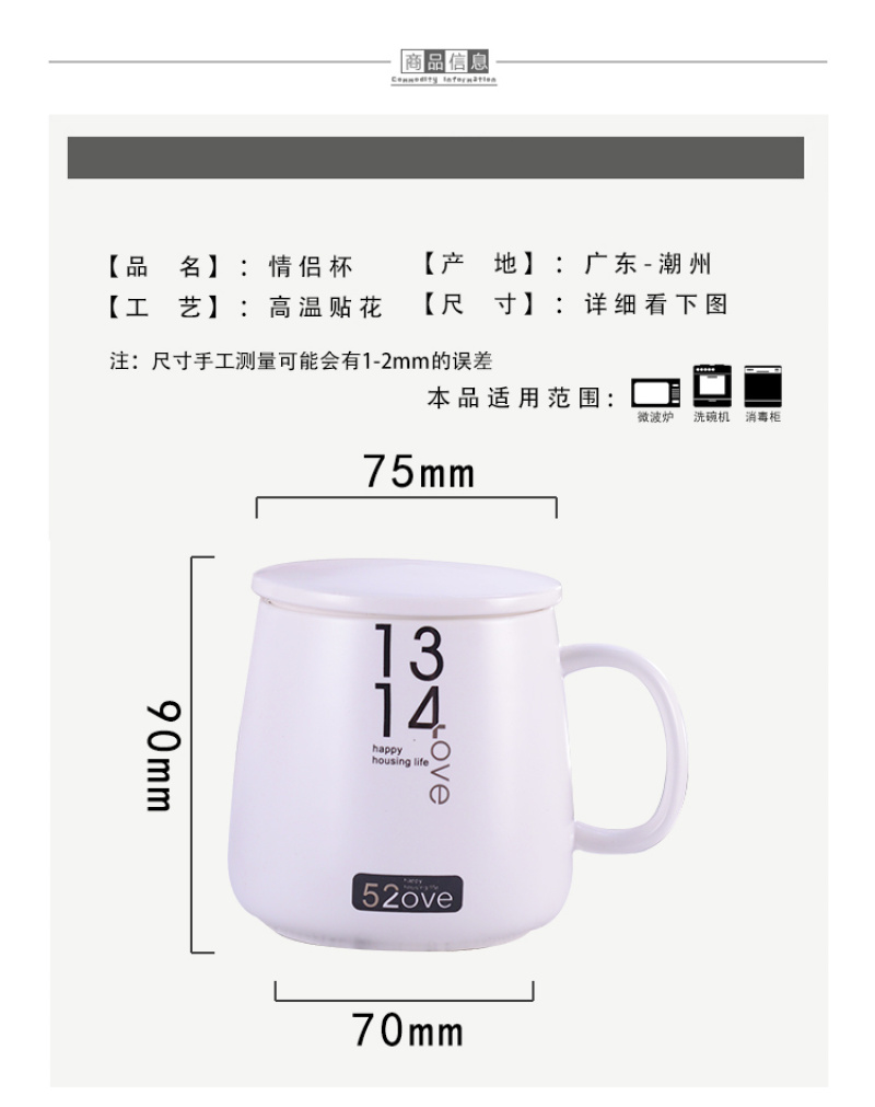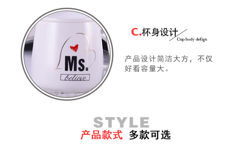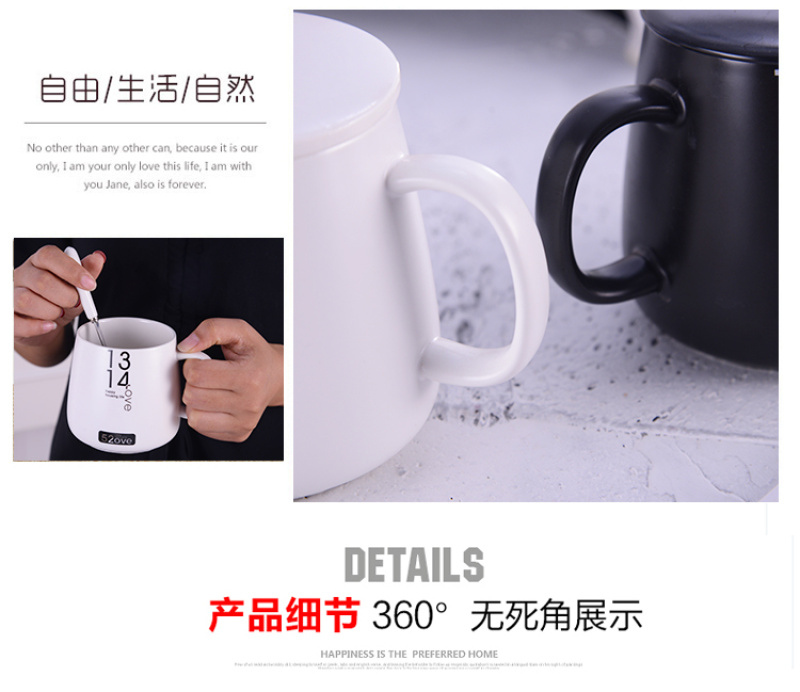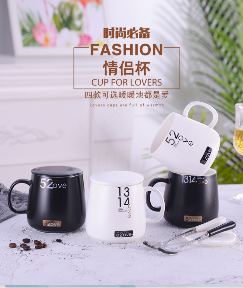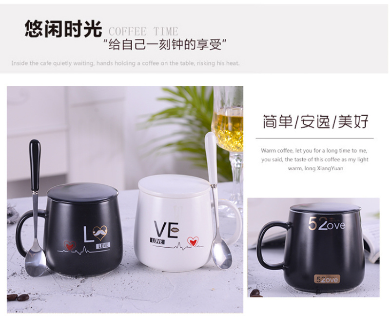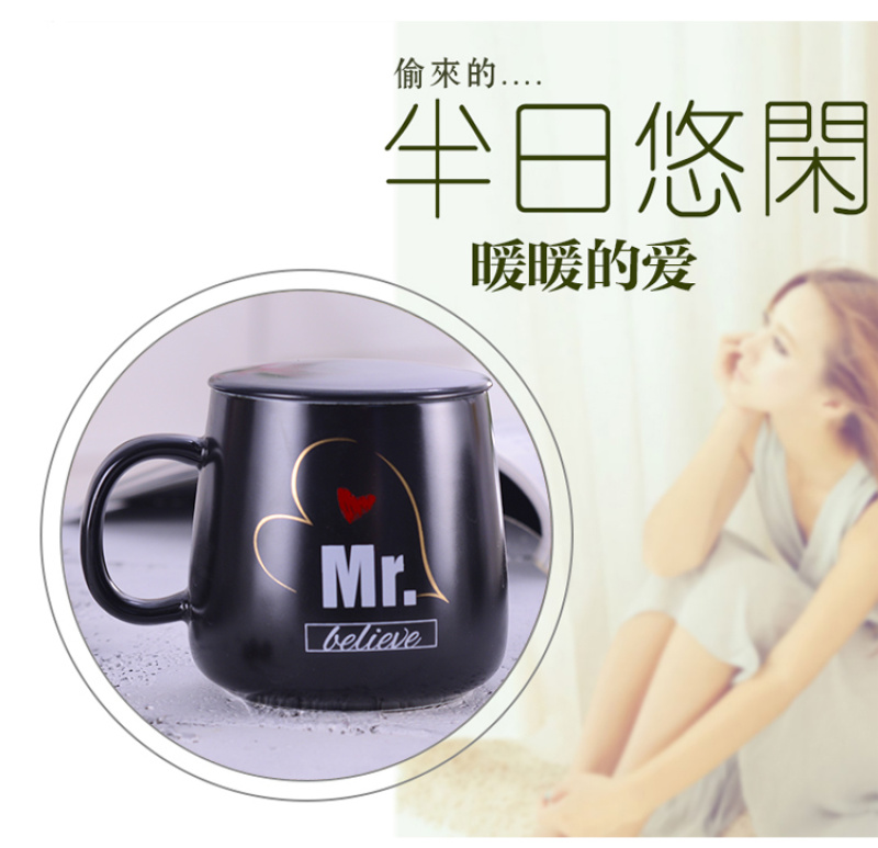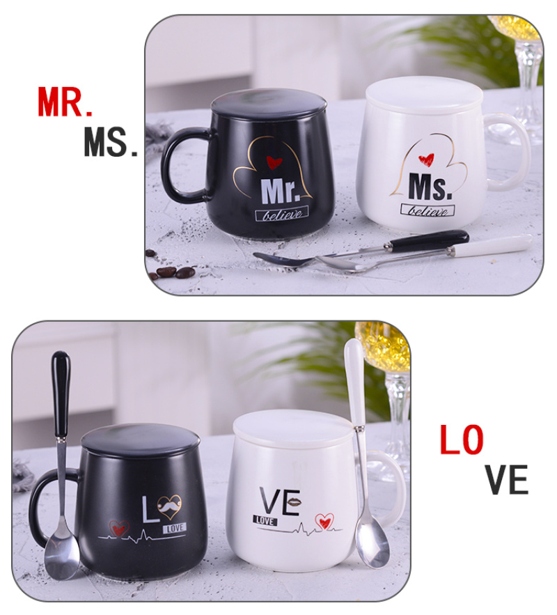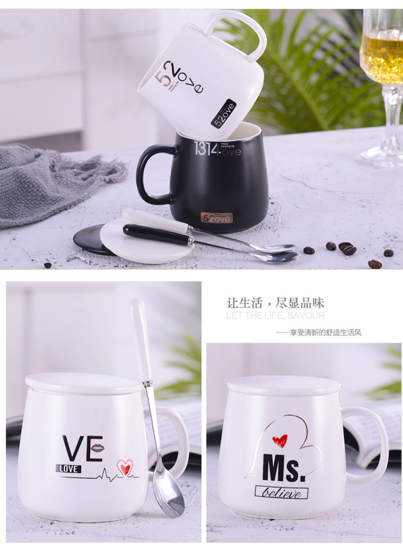 black and white tummy couple's cups water cup office water glass with spoon and lid coffee cup mug ceramic cup