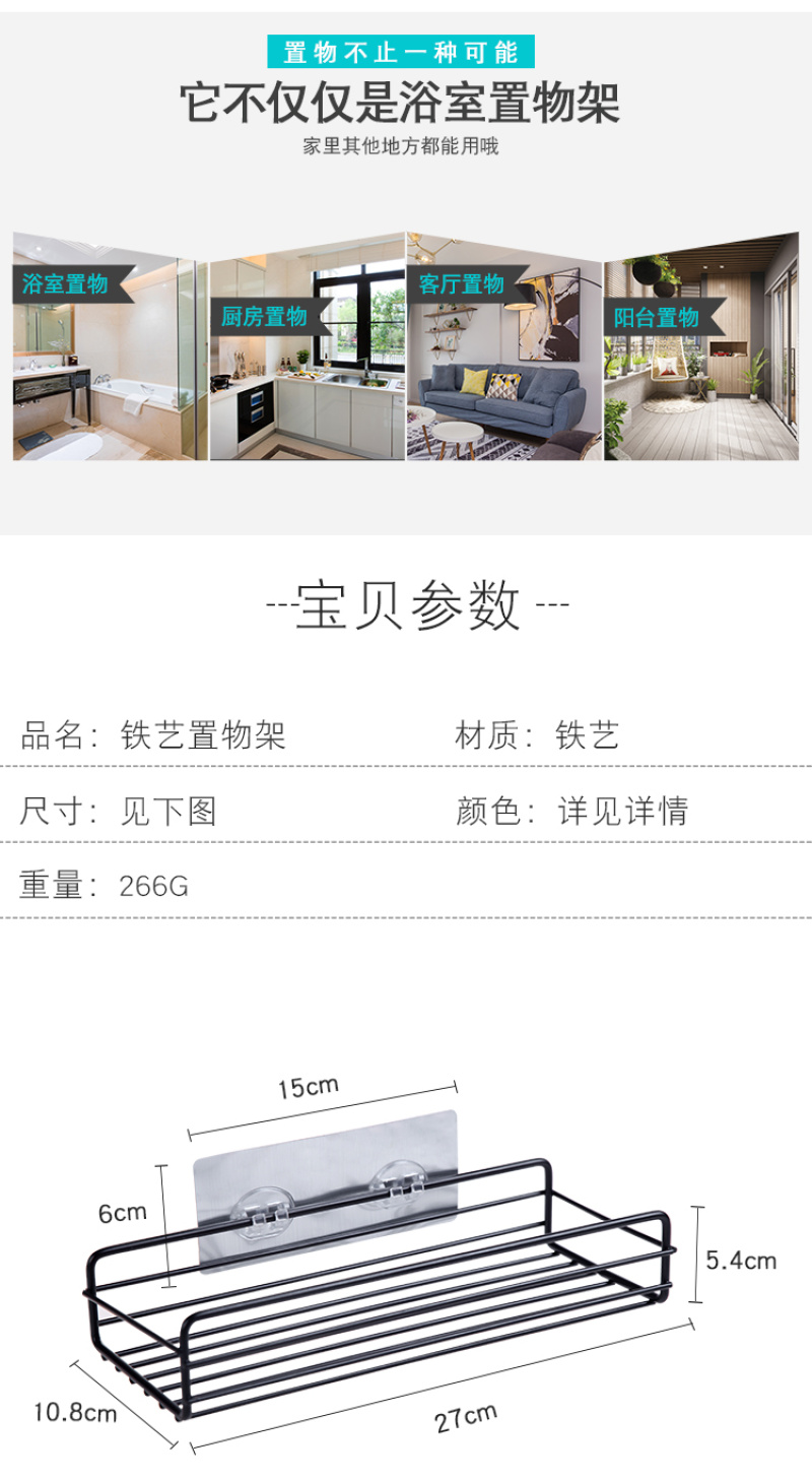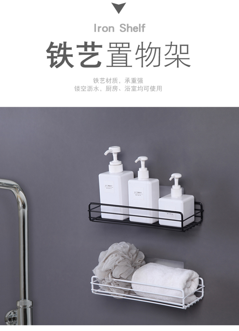 Iron Art storage rack with no need for drilling, made of iron, strong in bearing capacity, with perforated design for draining, suitable for use in the kitchen and bathroom, making your life more convenient. |