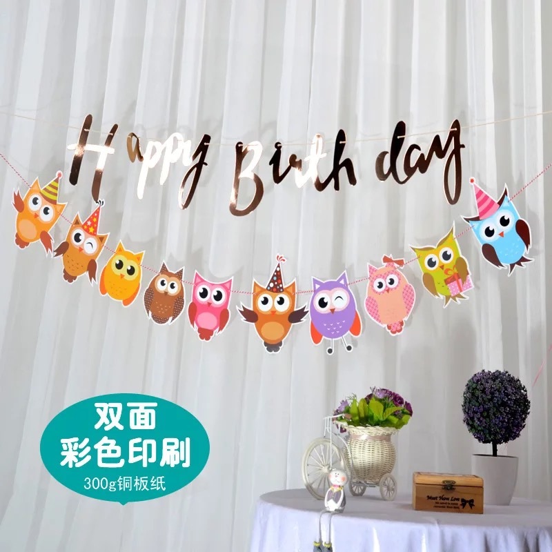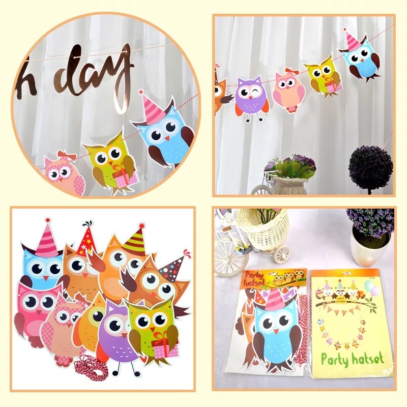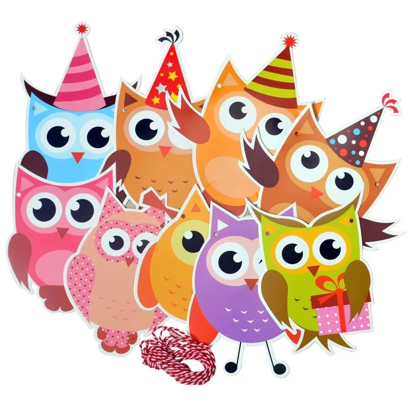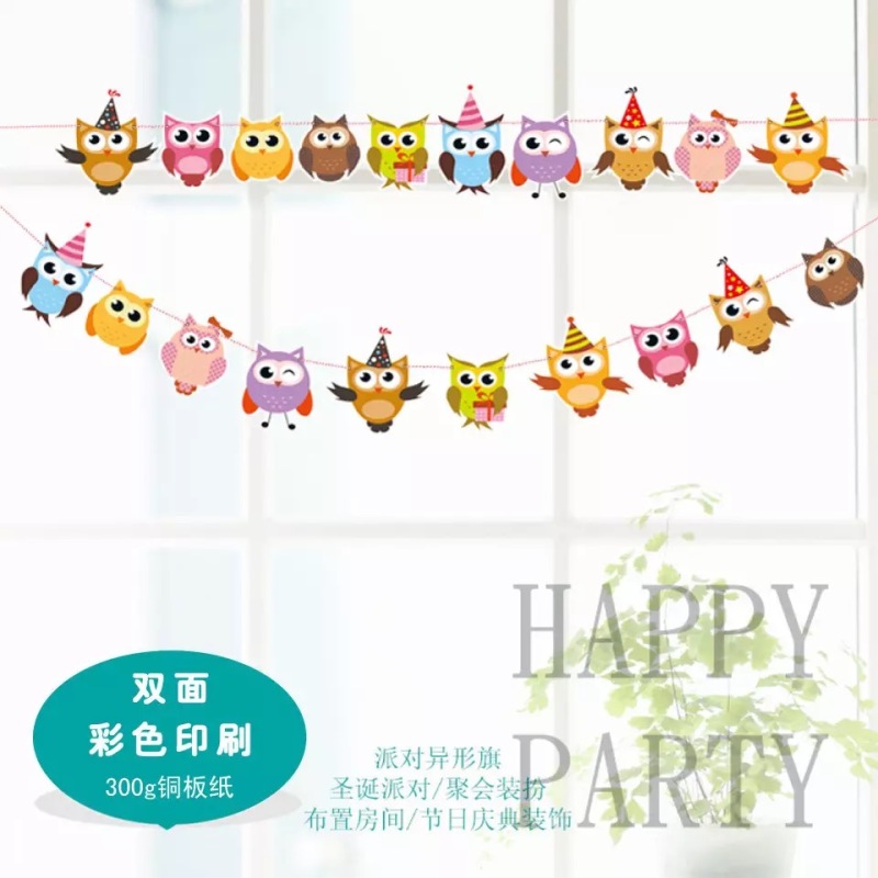 节日用品宝宝周岁儿童生日派对装饰布置用品彩色拉花 猫头鹰异形三角拉旗
