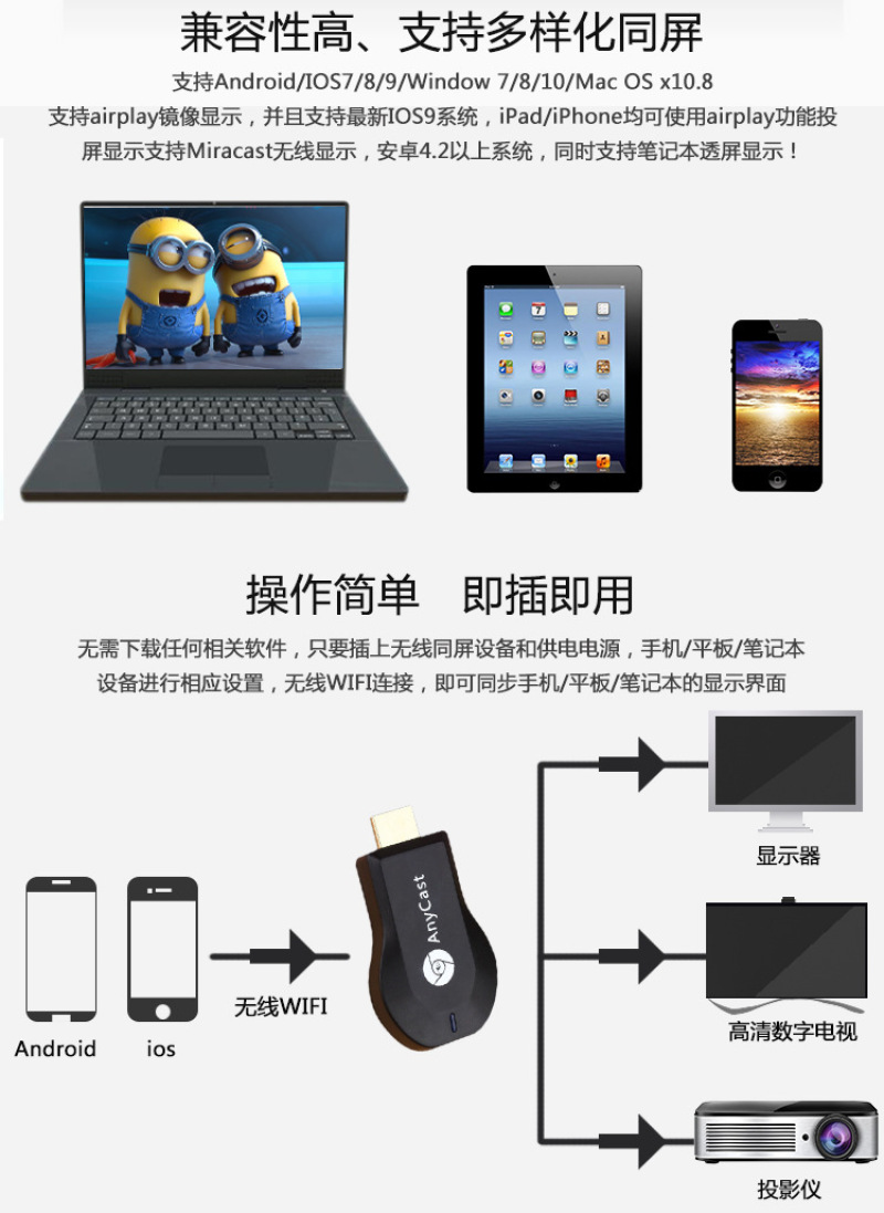 applicable to apple android mobile phone tablet wireless same screen switchboard wifi microcast m2m3m4