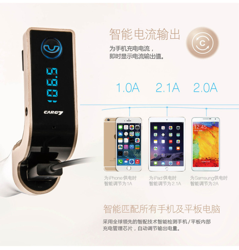 g7 car mp3 screen player hands-free phone car fm transmitter receiver bluetooth charger headset