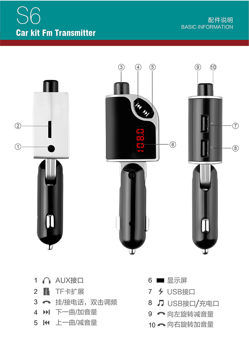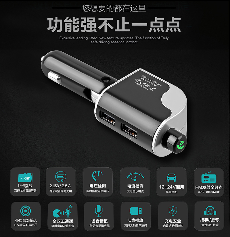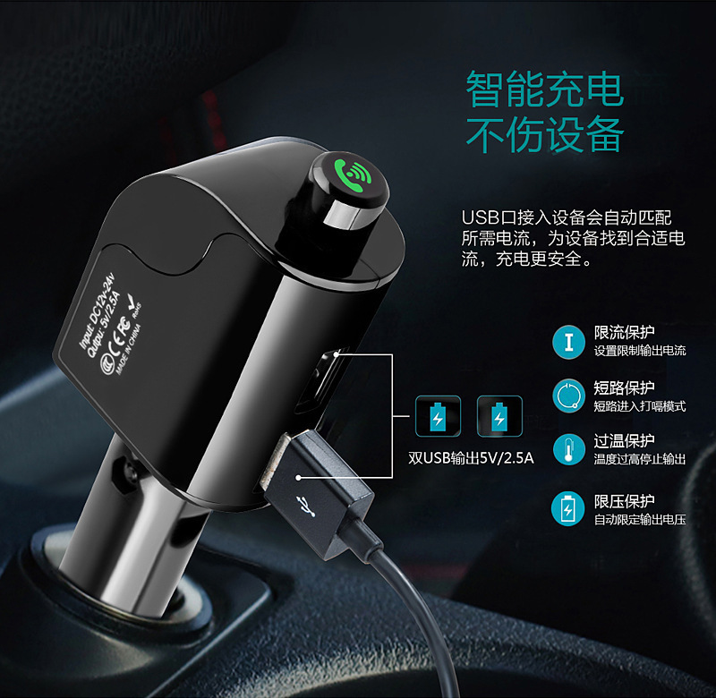 s6 blade car mp3 car bluetooth mp3 player hands-free call dual usb charging plug