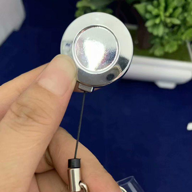 Wholesale 28MM zinc alloy circular pull-tab easy-to-open stretchable security lock grid PVC + dog clasp + key ring