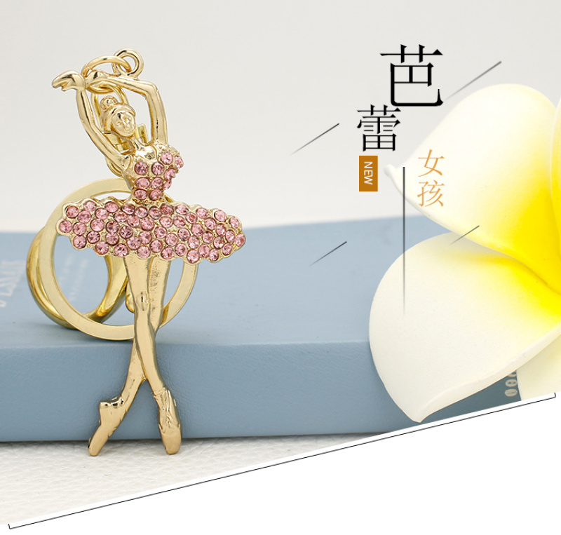 Classic hot selling creative metal diamond ballerina girl car key chain elegant lady bag with 100 accessories