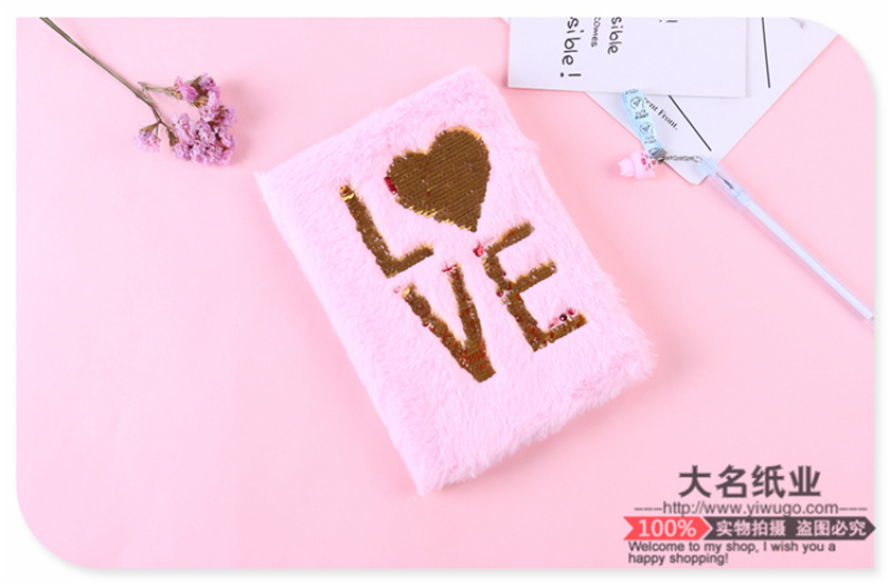 宝贝名称:金色LOVE亮片装饰粉色款少女风手绘本 学生笔记本 女生生日礼物