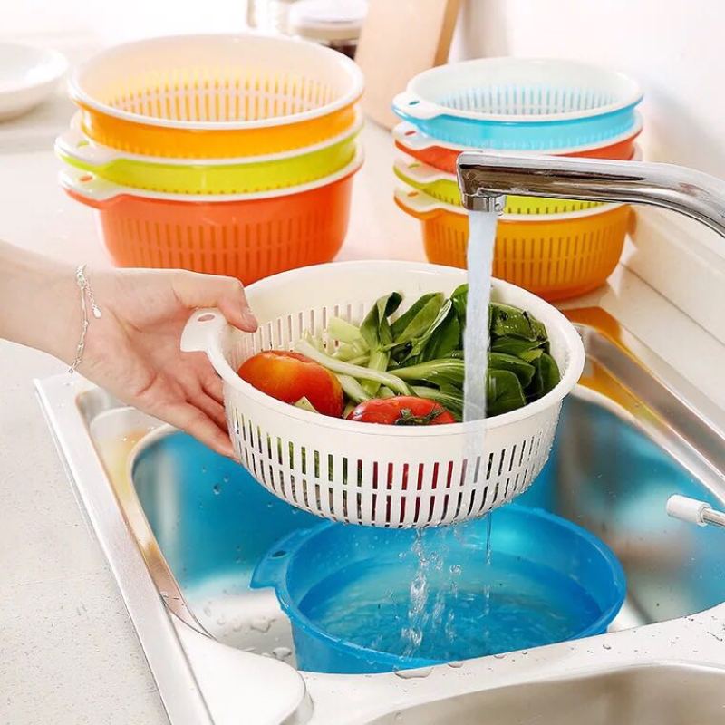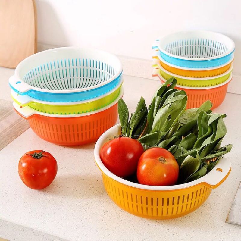 fruit and vegetable drain basket double-layer multifunctional storage basket plastic kitchen vegetable washing basket set