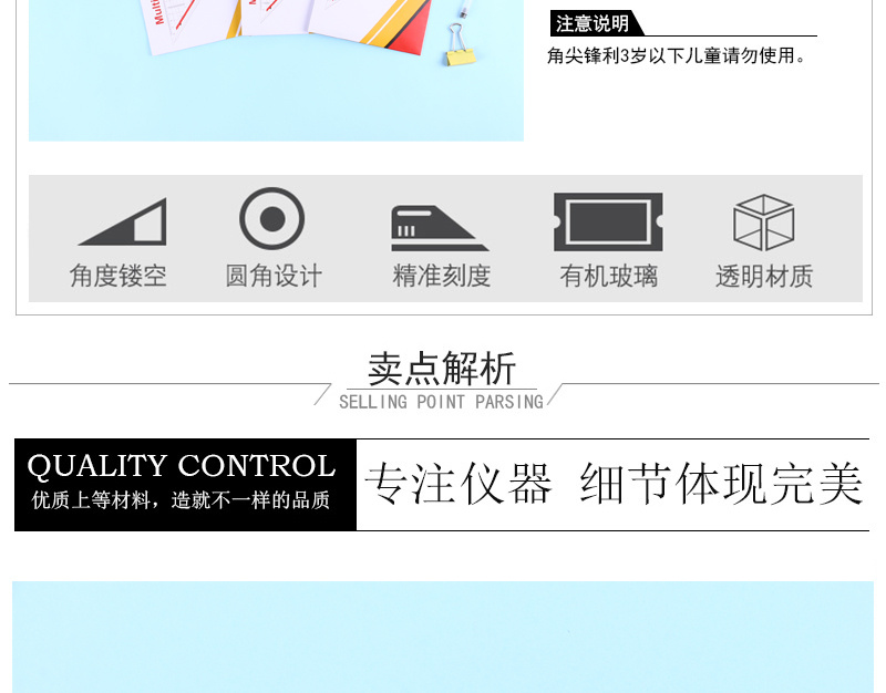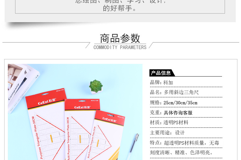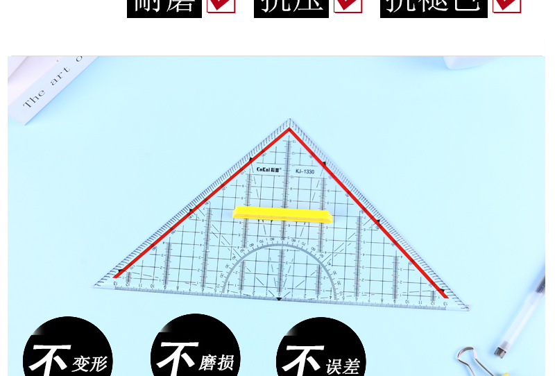 koga transparent triangular plate ruler with handle professional drawing right angle set square protractor template ruler