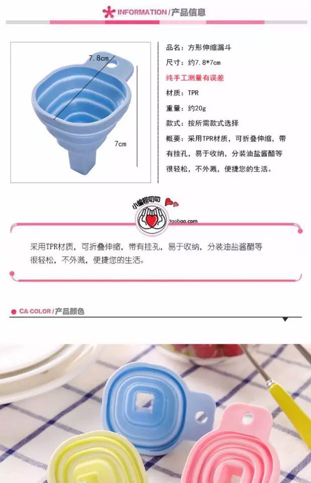 Square Small Telescopic Conical Funnel Kitchen Liquid Dispenser Household Food Grade Baking Tools