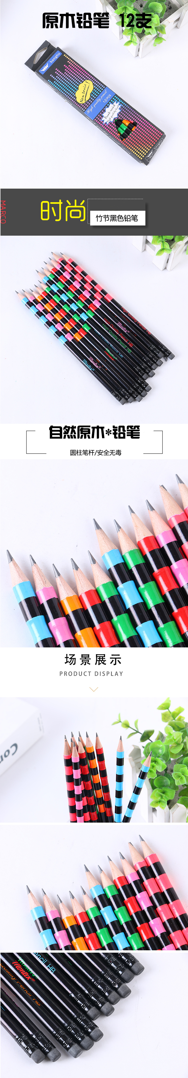 Boxed 12 PCs Black Pencil Little Learning Non-Toxic Drawing Pencil Cylindrical Penholder Writing Pencil