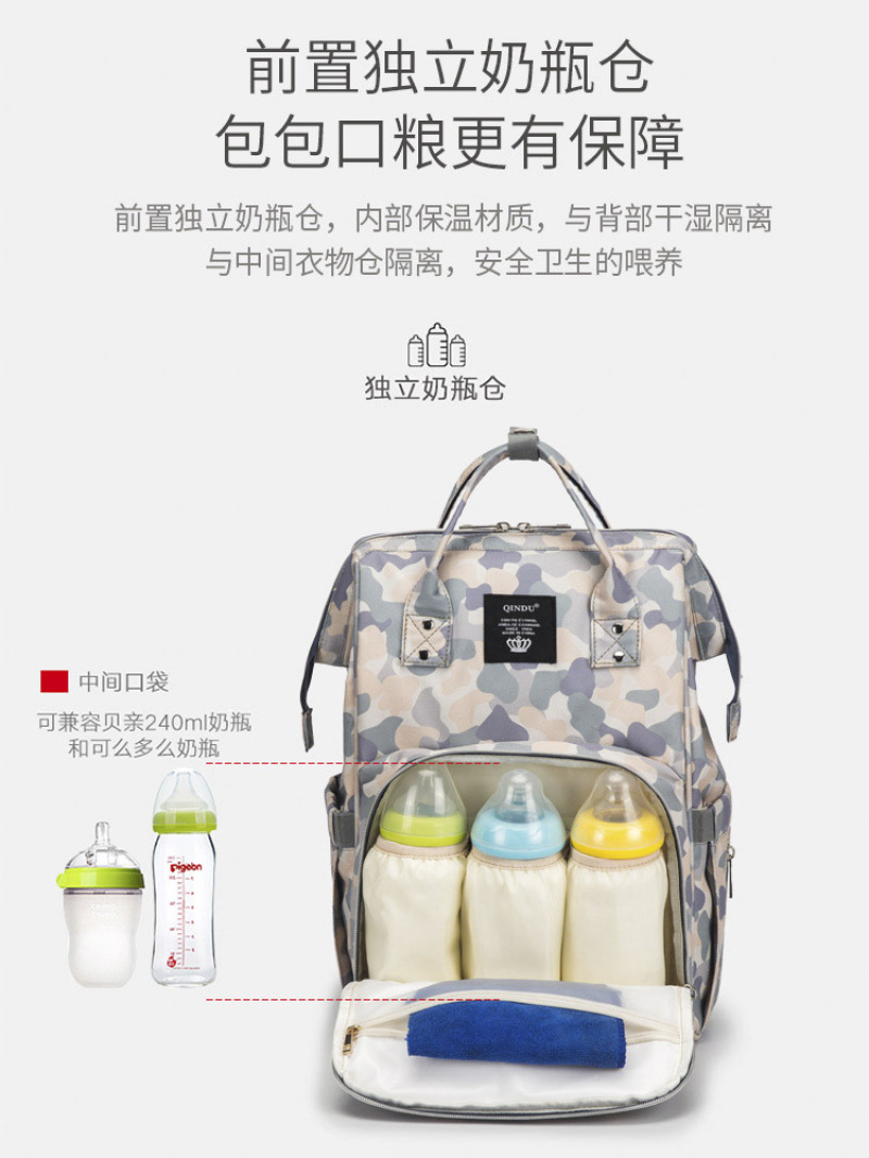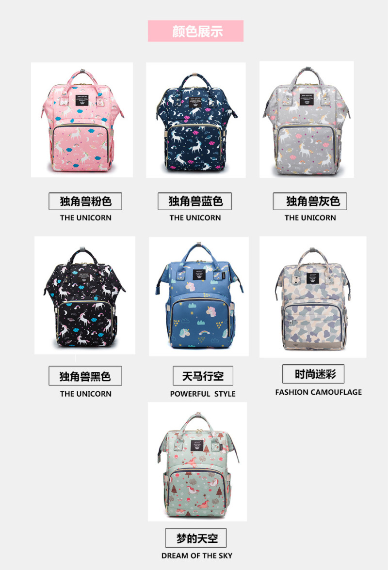 About Product:Printed mummy bag: The body is made of imported Oxford fabric which is bacteriostatic, waterproof, breathable, environmentally friendly and non - toxic. Full space in the bag, the clear classification, complete functions provides, The main bag with dry and wet separation bag, can put wet thanks towels. The Baby bottle insulation bag and the main warehouse separate design, More convenient and clean clean. On both sides of the bag, there is a paper box and a kettle for storage, . So the space can be german-russian co-operation, informs the suspension design can be directly attached to the baby cart, freeing the mother 's hands. A large number of spot can print logo, Suitable for the use of gifts for the confinement center, welcome to the major chain confinement club inquiry customized!