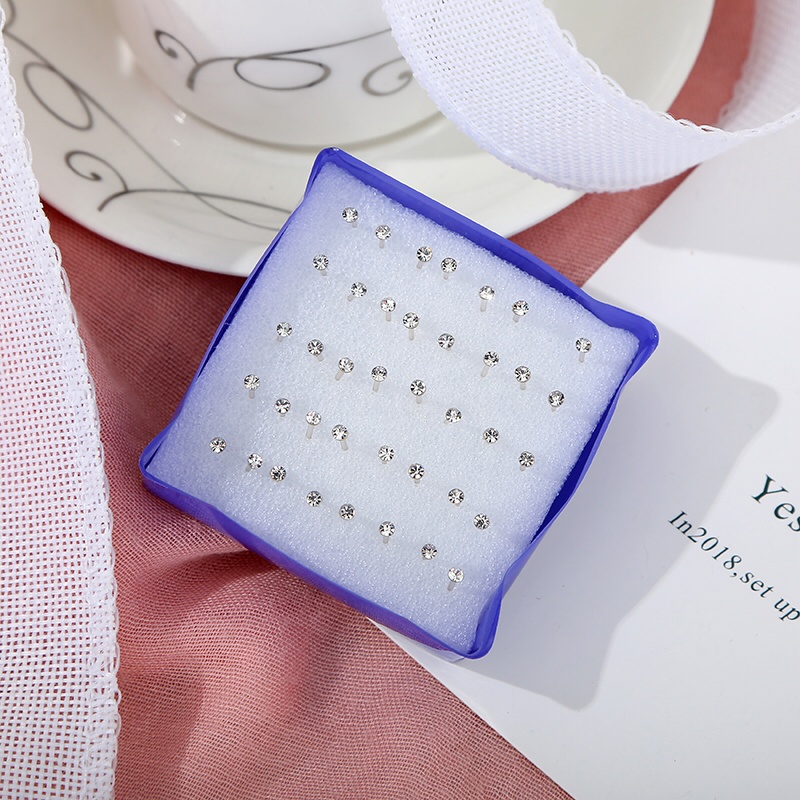 2.5MM Allergy-resistant Plastic White/Colored Rhinestone Earrings Blue Plastic Box Ear Plugs