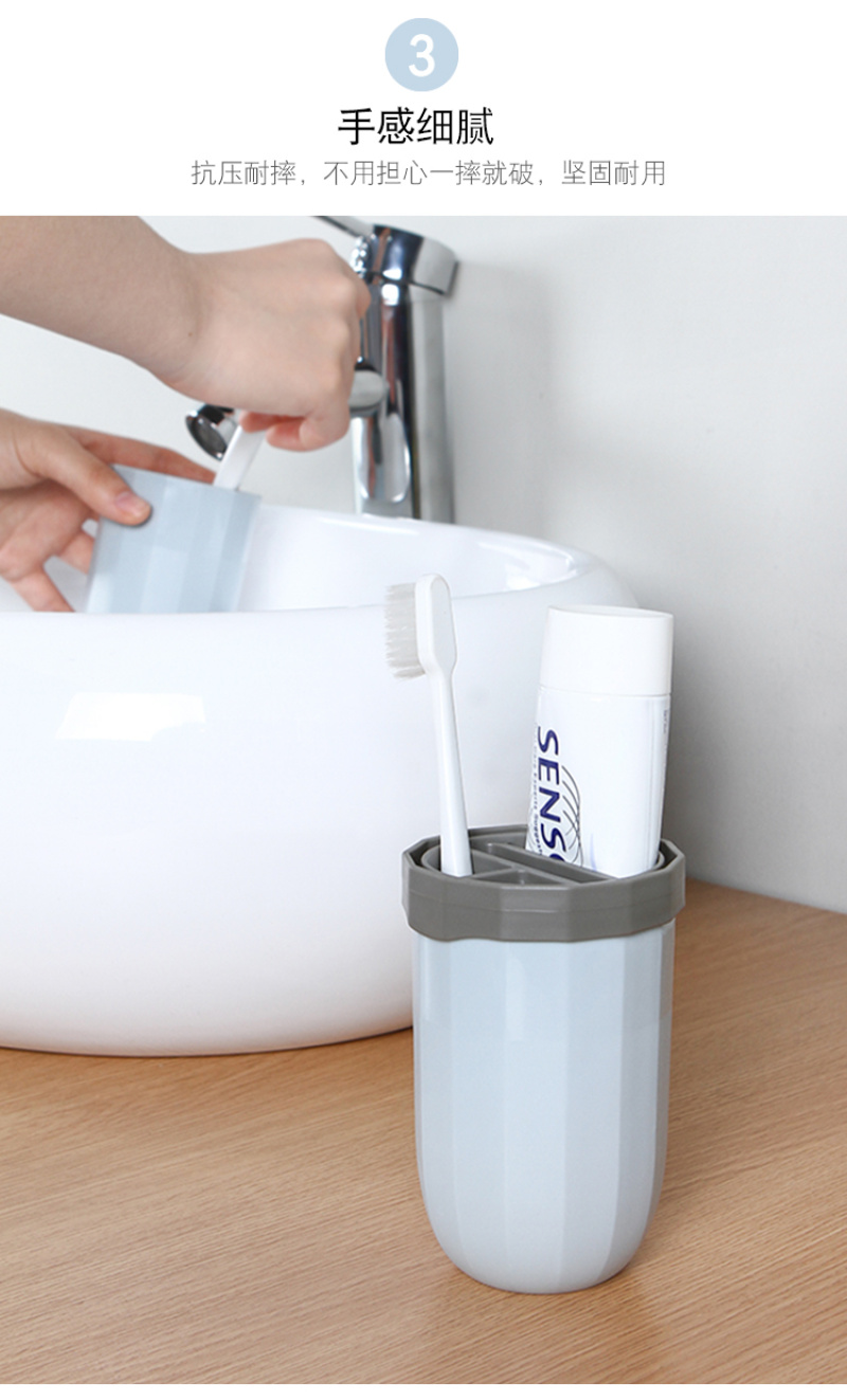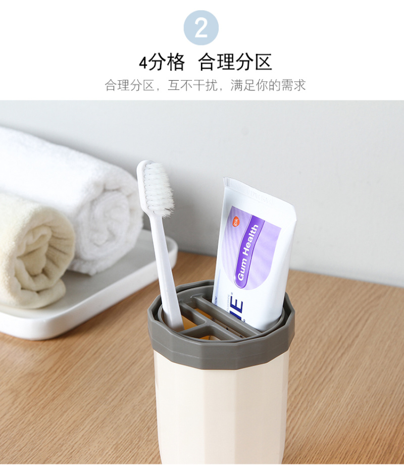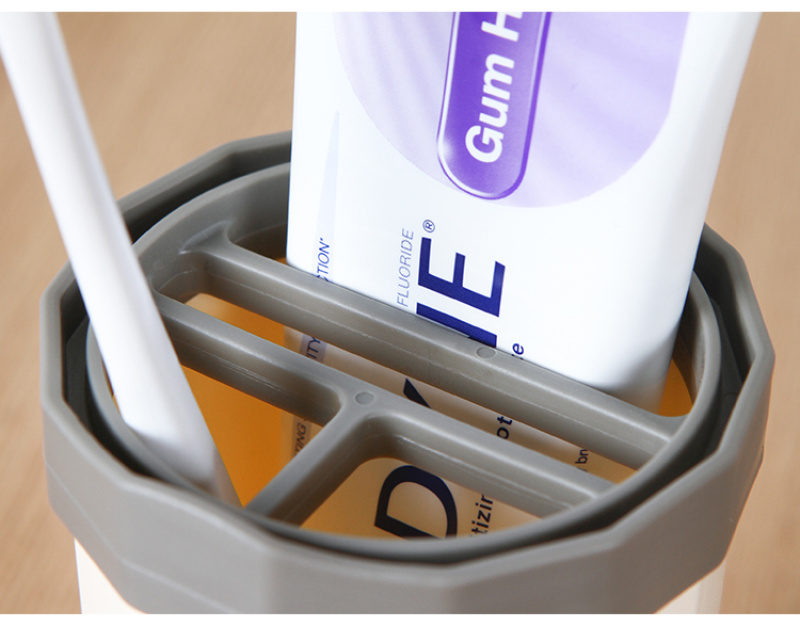 Portable travel toothbrush case, made of PP material, with a simple and elegant design, beautiful stripes, and a 4-partitioned interior for a large capacity. The cup rim is smooth with no sharp edges, making it convenient to use. It is multifunctional and can hold toothpaste, toothbrushes, combs, and other toiletries, making travel more convenient. |
