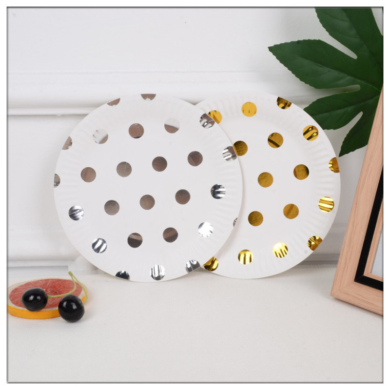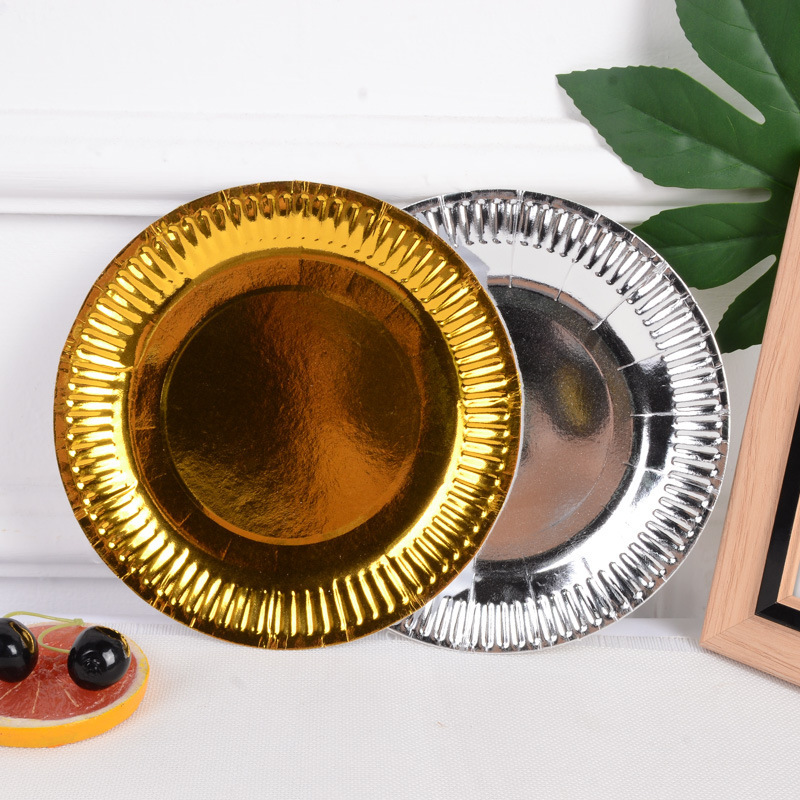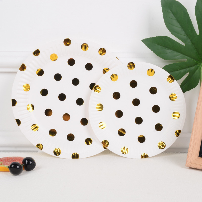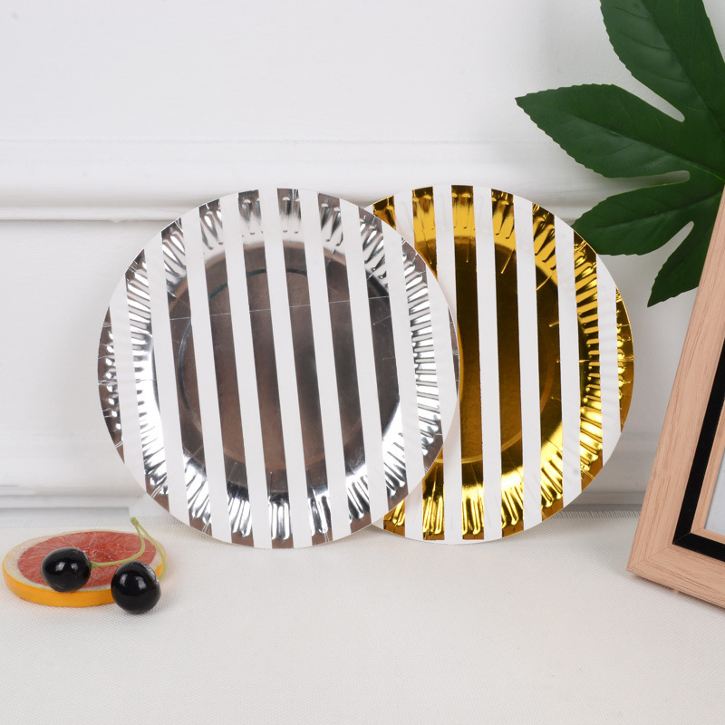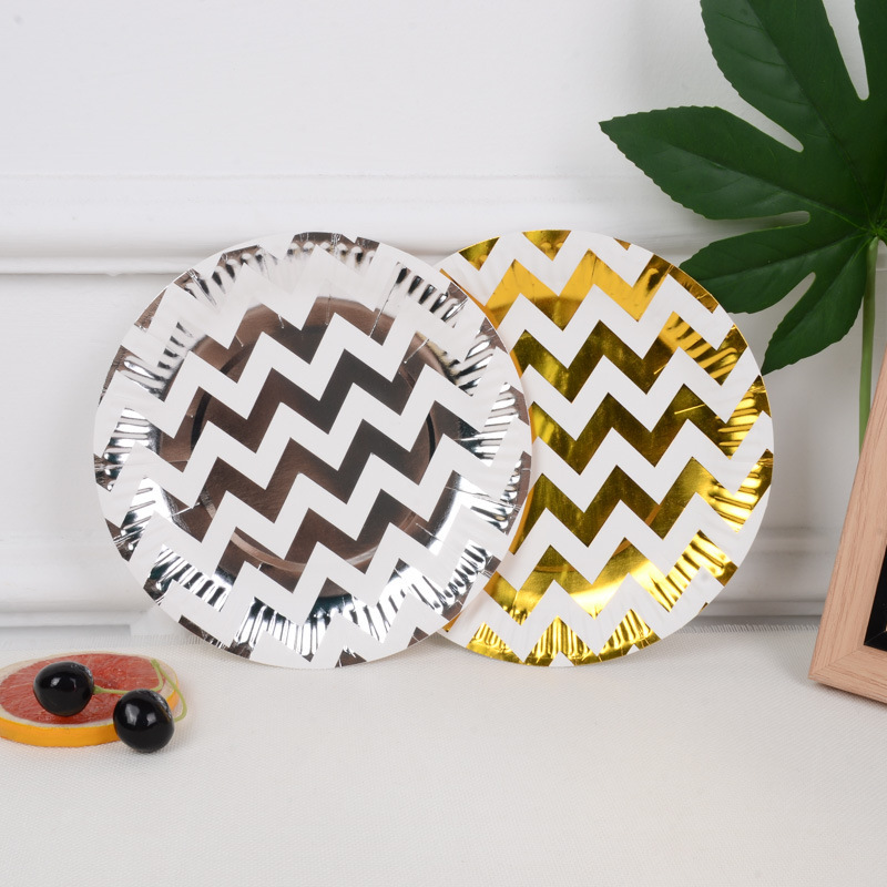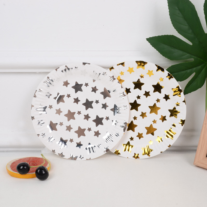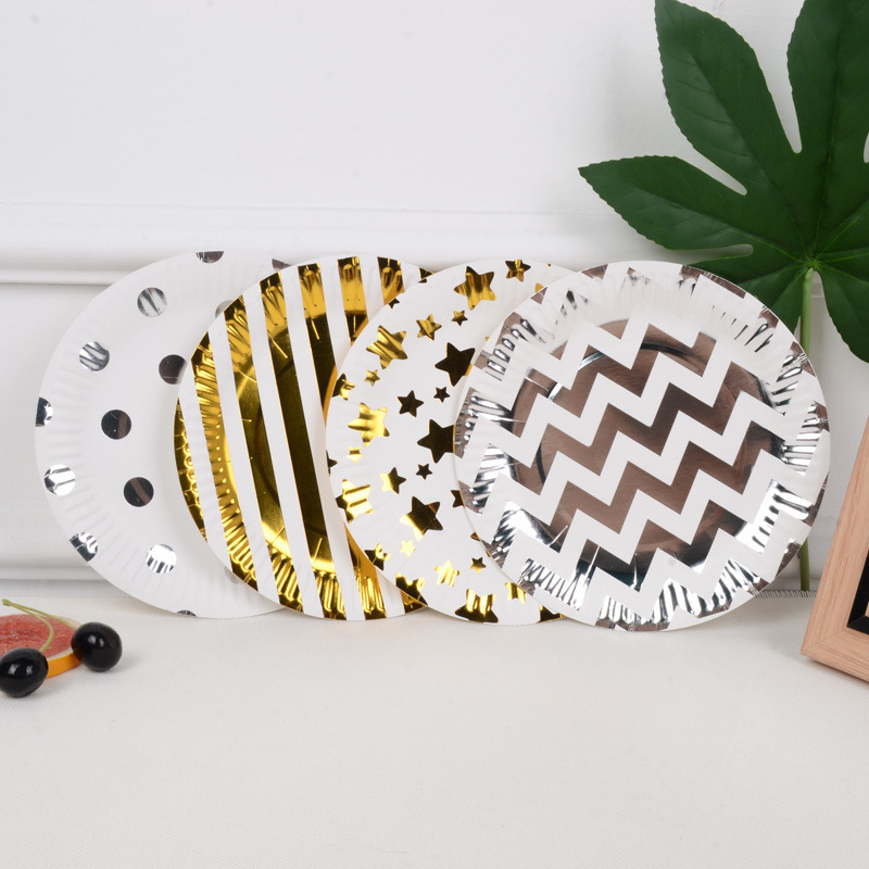 新款烫金纸盘高档一次性派对用品节日用品生日五角星条纹圆点波浪