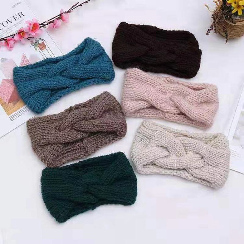 Knitted Wool Hair Band Mori Women's Sweet and Simple Autumn and Winter Cross-Knotted Wide Brim Hair Band Headband Hair Accessories