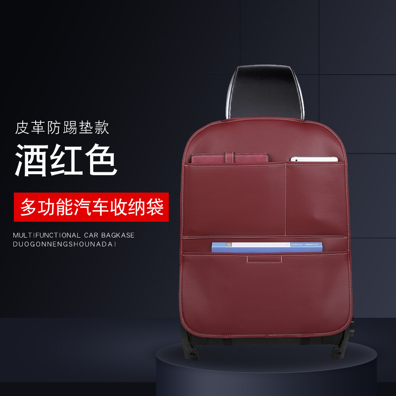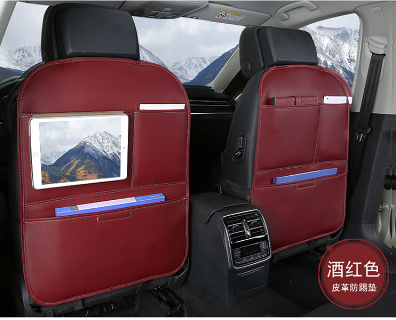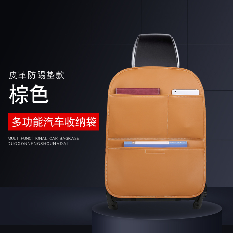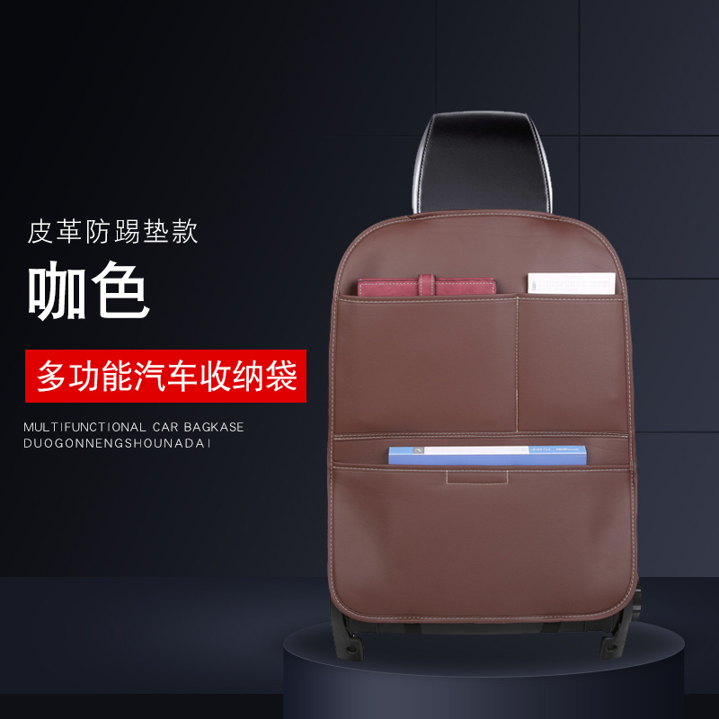 Leather anti-kick pad, multi-function rear row, children's car seat, back pocket, hanging bag, vehicle-mounted storage b