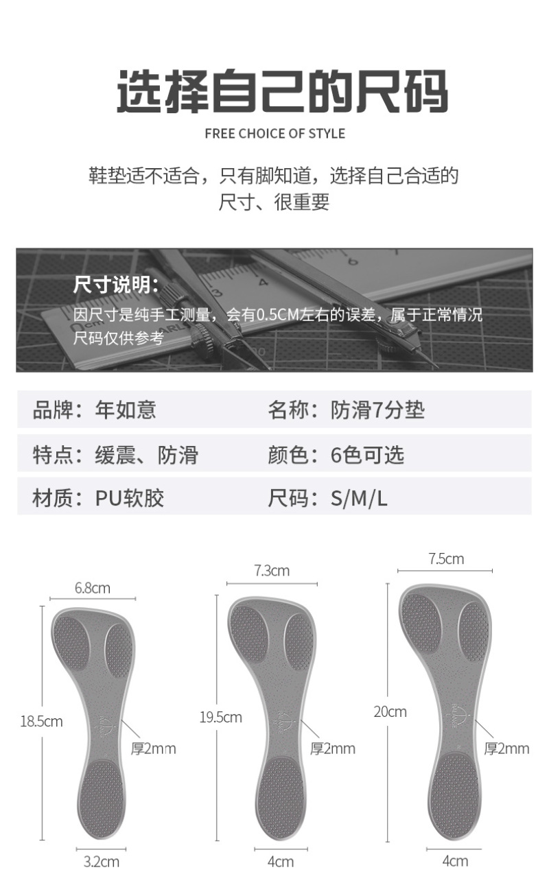 insoles that can be pasted on shoes in summer and autumn women's sandal slippers pumps sole surface 3/4 cushion factory