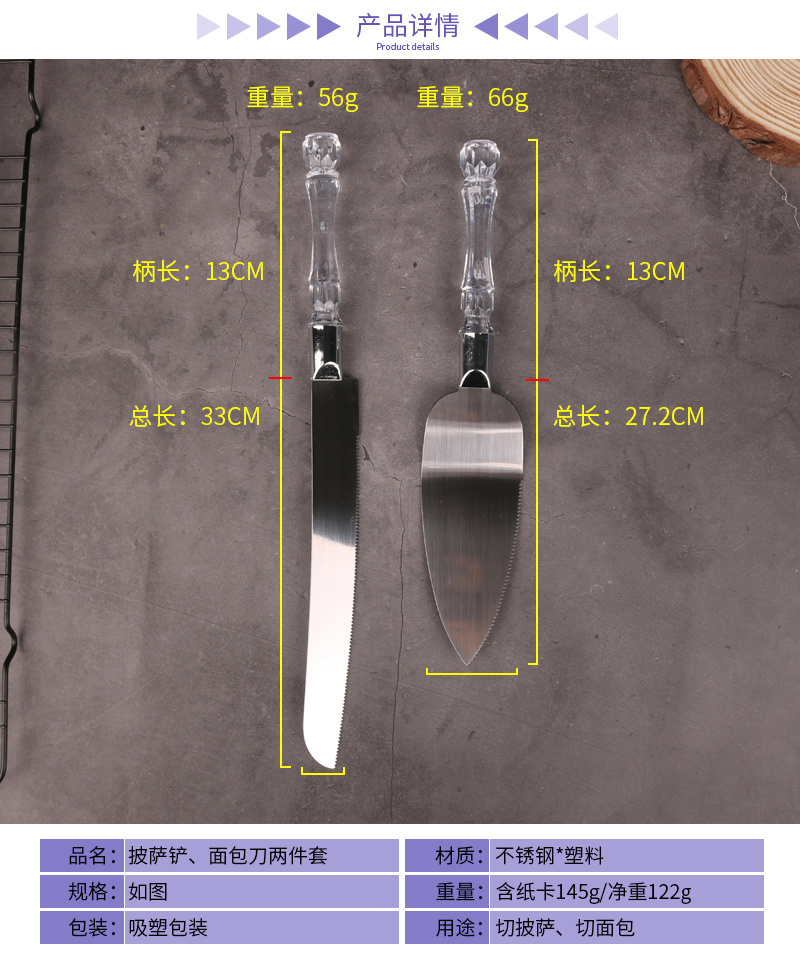 Manufacturer direct selling transparent handle cake spatula bread knife 2 sets pizza knife cheese knife