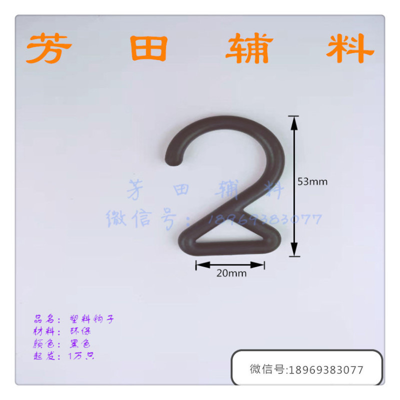【Product Model】: Hook 【Product Size】: Inner Diameter 20mm 【Product Material】: Plastic Environmental Protection 【Product Color】: Black |