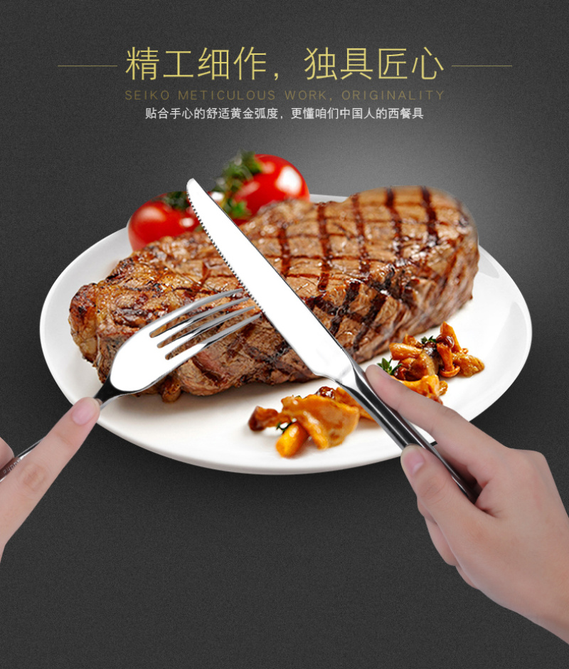 thickened stainless steel steak knife and fork three-piece set household high-end european-style western tableware