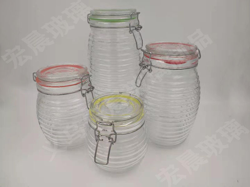 factory direct sales glass sealed can kitchen supplies horizontal pattern buckle glass sealed can, storage tank 中文版