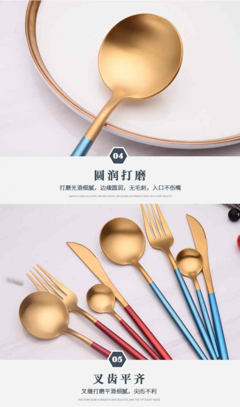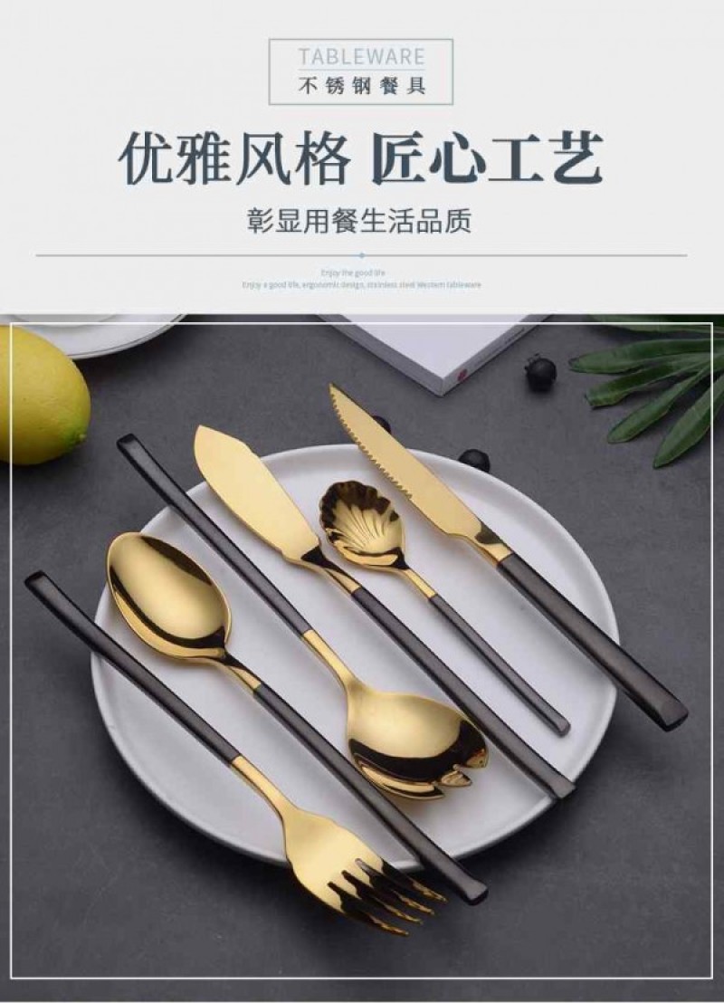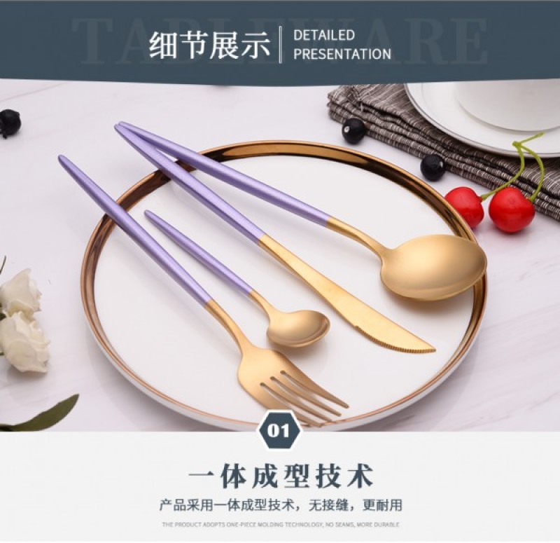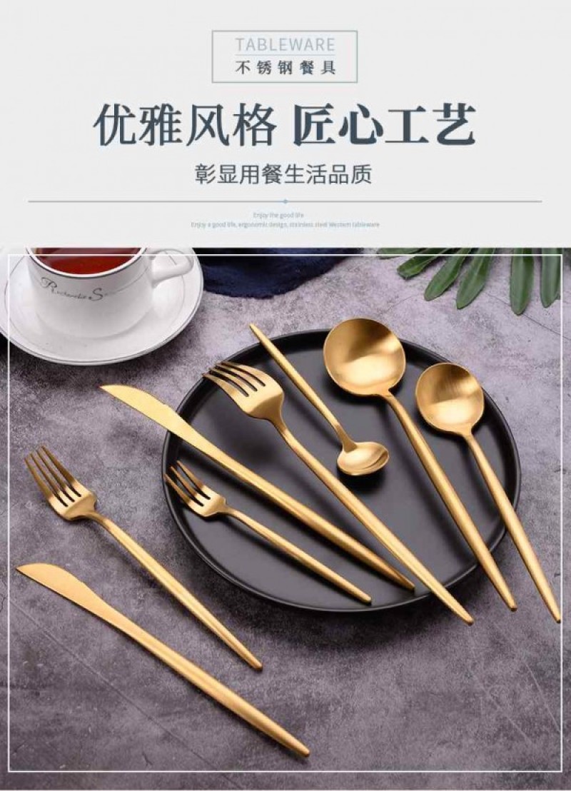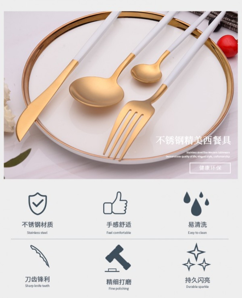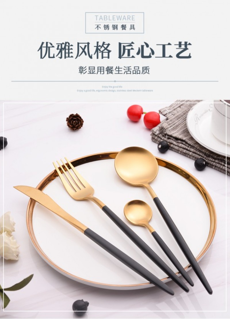 Tableware New Portuguese Handle Western Tableware Gold Plated Knives, Forks, and Spoons Gift Tableware 304 Gift Box Tableware