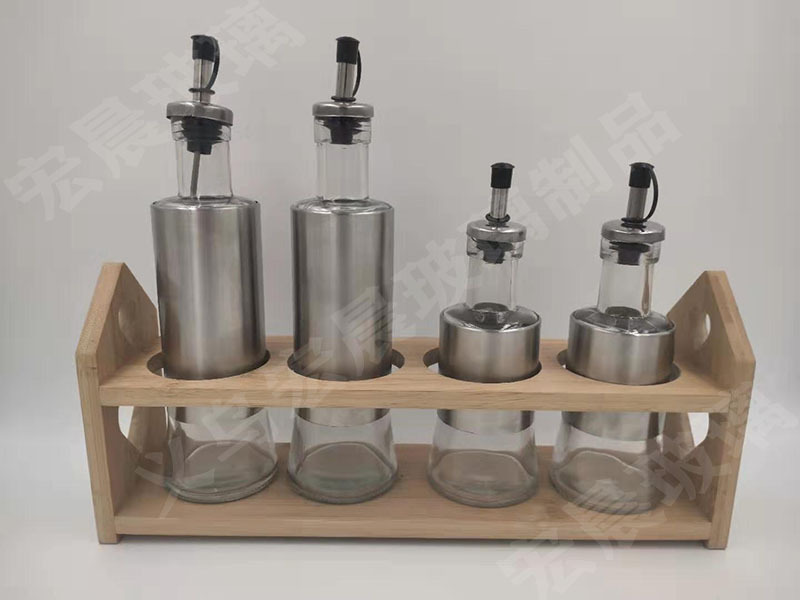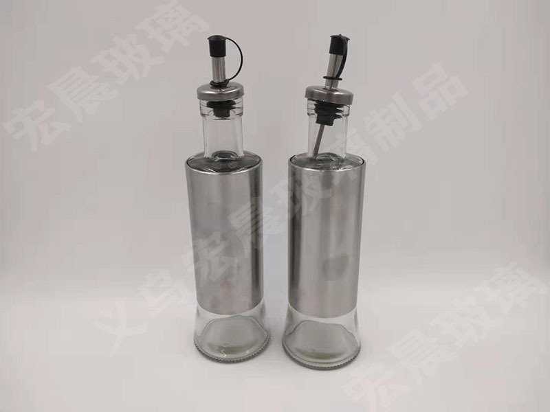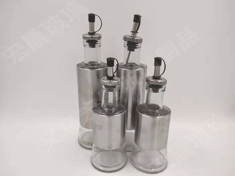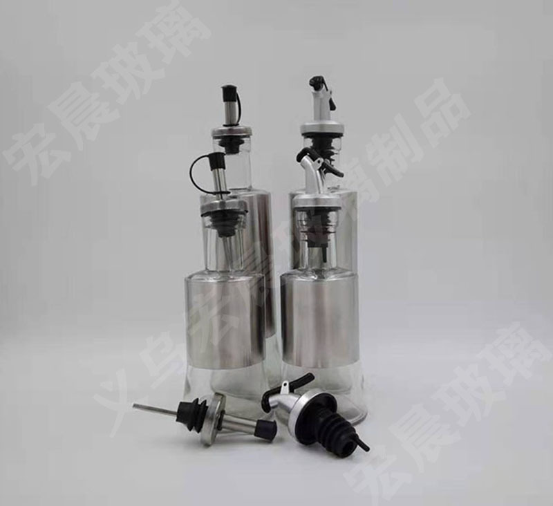 factory direct sales stainless steel leather shell glass oil bottle multi-capacity leather shell glass oil bottle