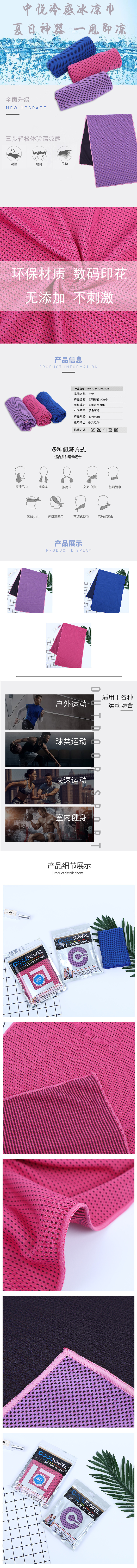 Yiyang Zhongyue Cold Plain Color Ice-Cold Towel Professional Sports Handkerchief Men and Women Workout Sweat Quick-Drying Towel