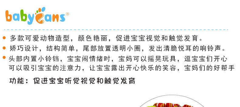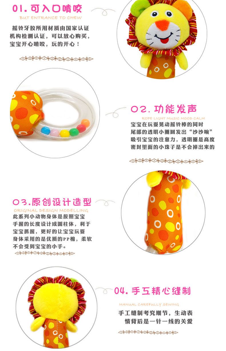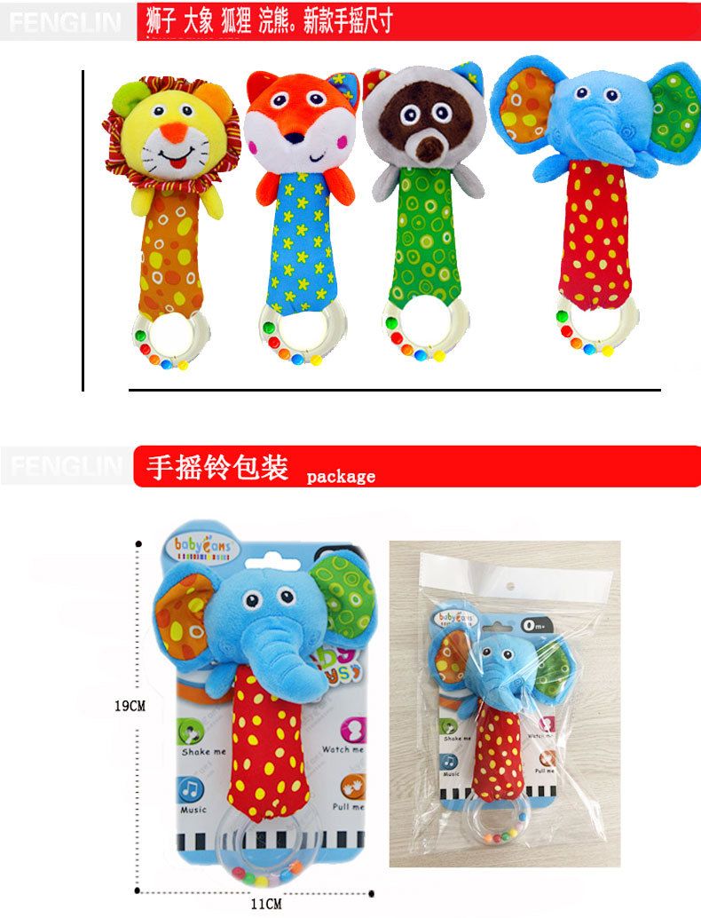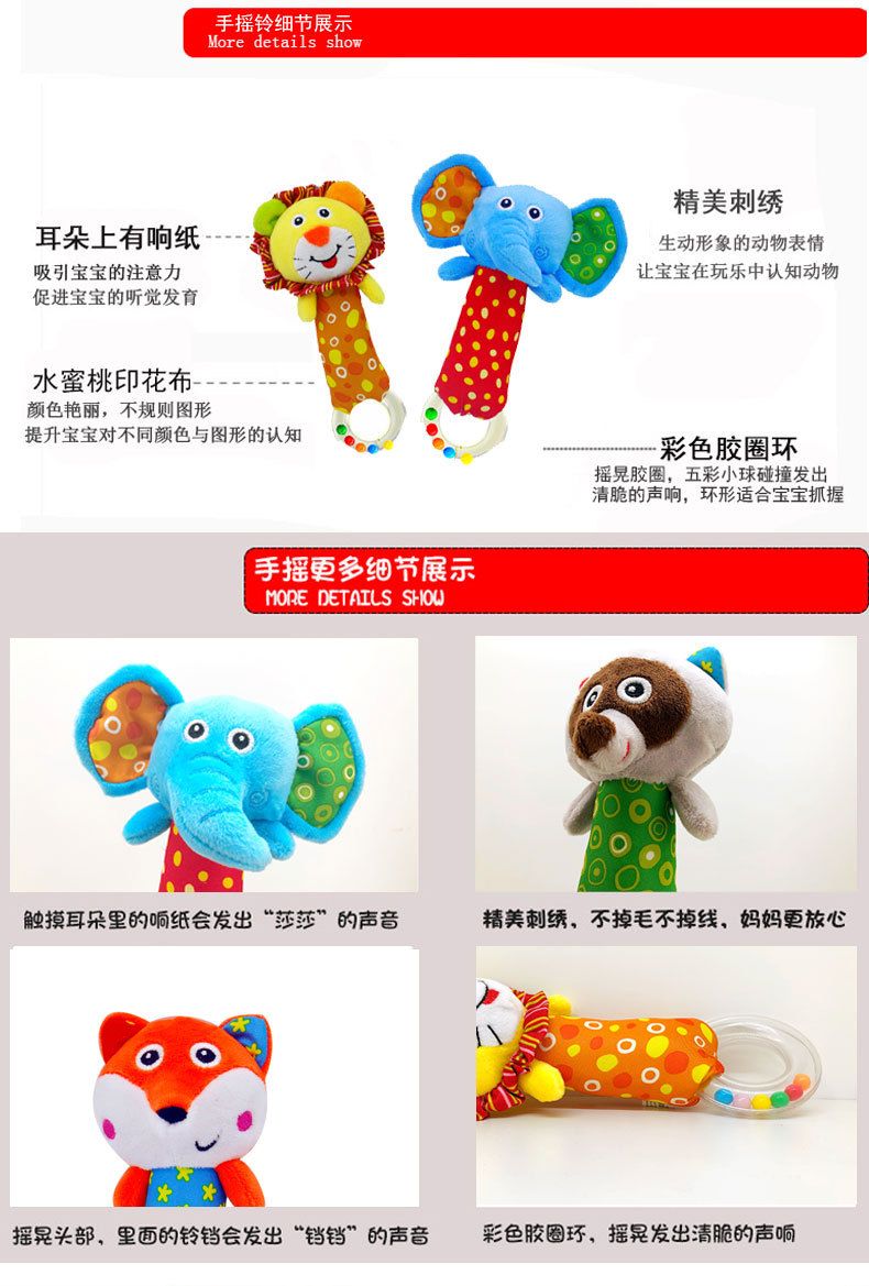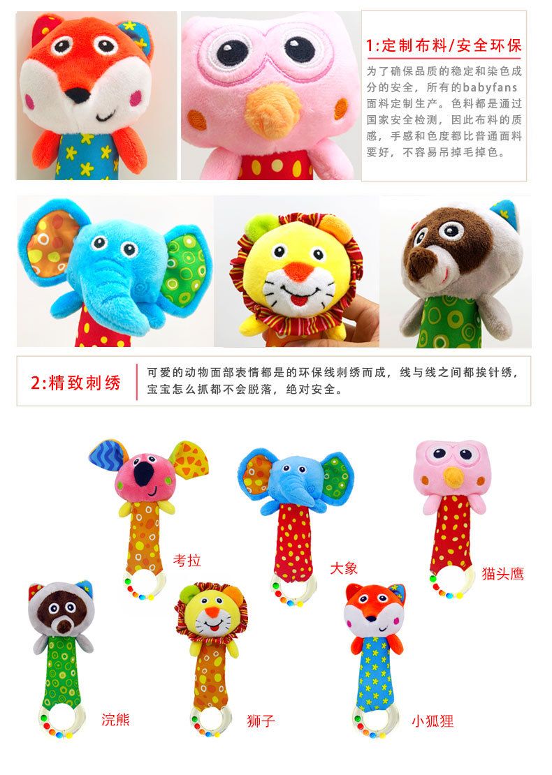 babyfans infant educational plush toy soothing hand ring hand rattle animal