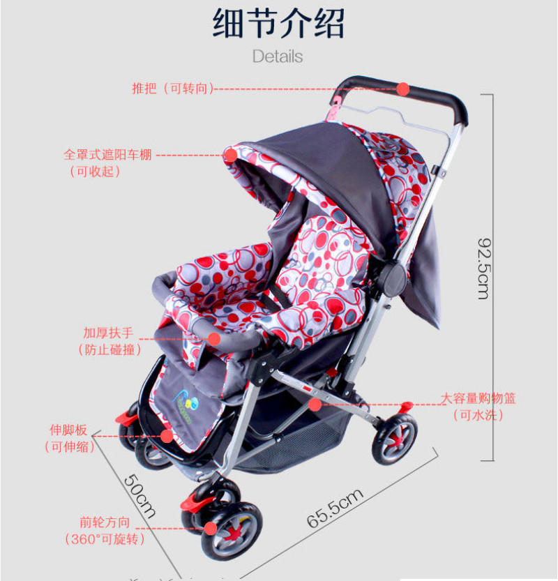 Bird King - Stroller. Colors: Red, Gray. This product is mainly supplied to export companies and directly purchased by foreign buyers. Our factory is an enterprise with the right to independently import and export. We can offer FOB Tianjin Port, accept US dollars, and provide OEM sample processing and branding services! Company brand trademarks: "Bird King", "Oralma".