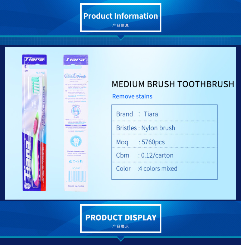 Tiara 780 Medium Bristle Adult Toothbrush Foreign Trade Export Wholesale