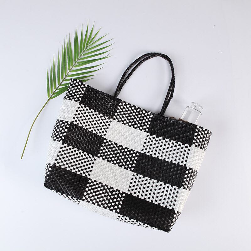 Contrast color vegetable basket hand-woven bag large capacity beach vacation bag striped environmental protection handbag